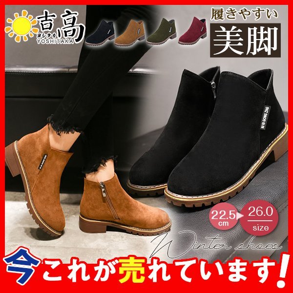 激安 ショートブーツ レディース ラウンドトゥ スエード 太ヒール ローヒールブーツ サイドジップ サイドファスナー 合成皮革 秋冬 新作 通勤