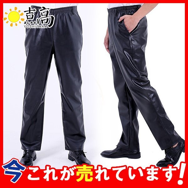 レザーパンツ メンズ パンツ バイクパンツ PU レザー ズボン ウエストゴム ライダースパンツ 革パン 自転車 フェイクレザー 防寒 防風 秋冬
