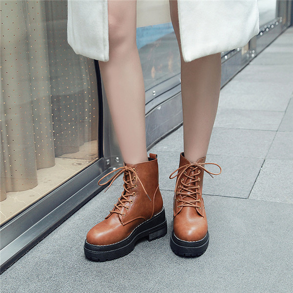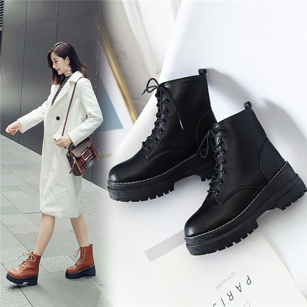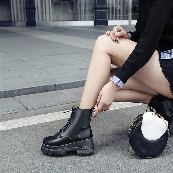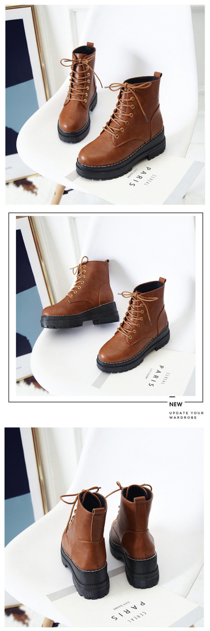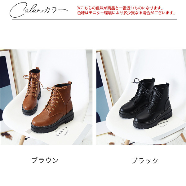 ショートブーツ レディース ブーツ 靴 シューズ 厚底 ワークブーツ レースアップ 撥水加工 滑りにくい ローヒール 春秋冬 美脚 歩きやすい