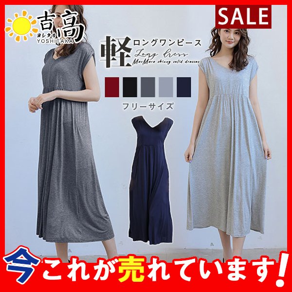 ワンピース ロング丈 レディース ゆったり Vネック フレア 半袖 ノースリーブ マキシワンピース ロングワンピース 体型カバー Aライン おしゃれ
