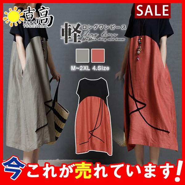 ワンピース ロング丈 レディース ゆったり 麻綿 半袖 マキシワンピース 春夏 体型カバー ロングワンピース 大きいサイズ きれいめ Aライン