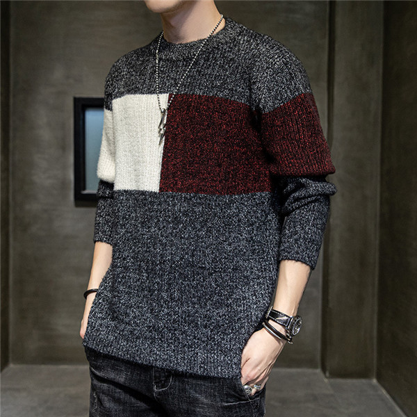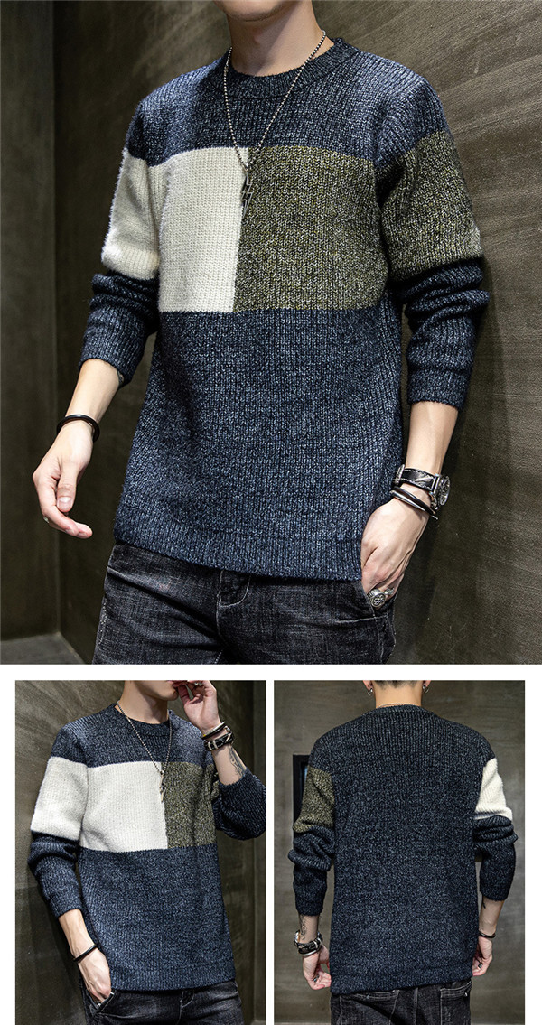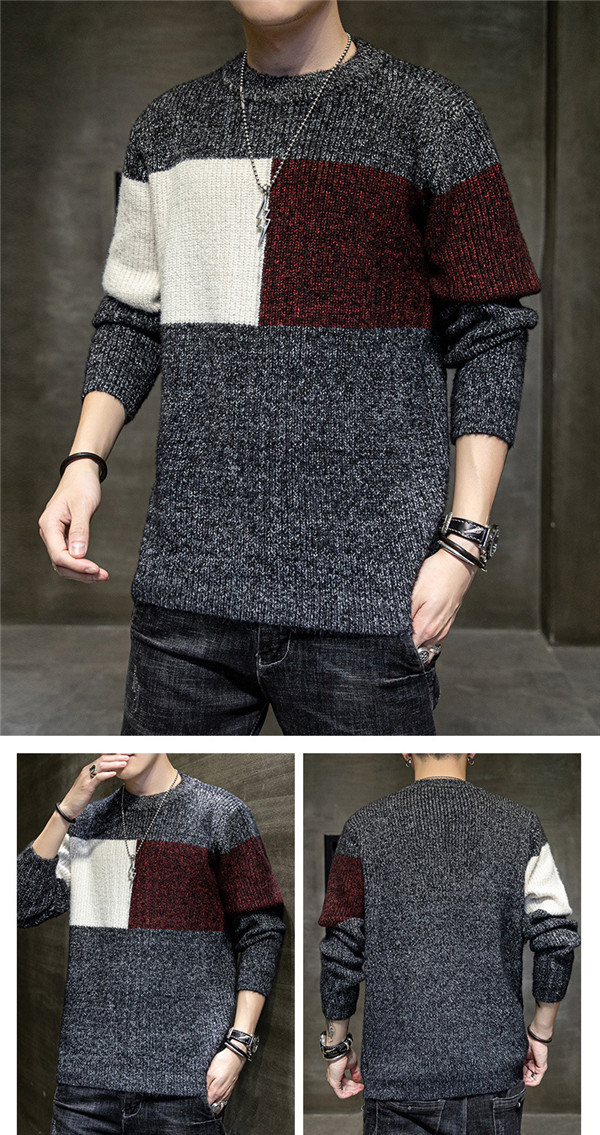 ニットセーター メンズ 厚手 防寒 クルーネック カラーマッチング カジュアル 大きいサイズ ゆったり 冬服 秋冬 体型カバー 上品 高級感 紳士服