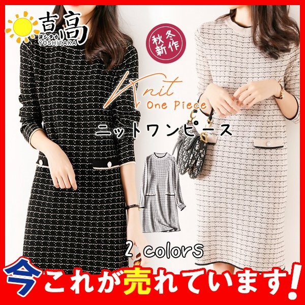 ワンピース ニットワンピース レディース チェック 秋冬 膝丈 厚手 きれいめ 上品 ワンピース 大人 お出かけ トップス 通勤 着痩せ おしゃれ