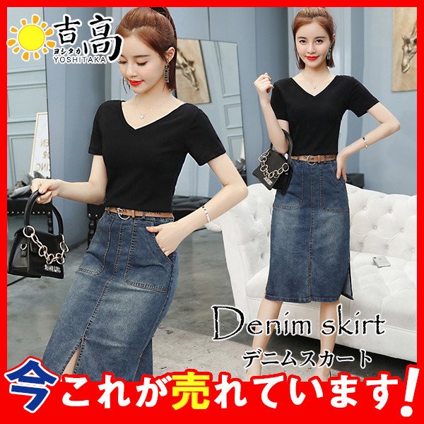 デニム スカート スリット レディース タイトスカート ナロー スリット ハイウエスト Aライン ロング丈 ロングスカート 着痩せ スリム ボトムス