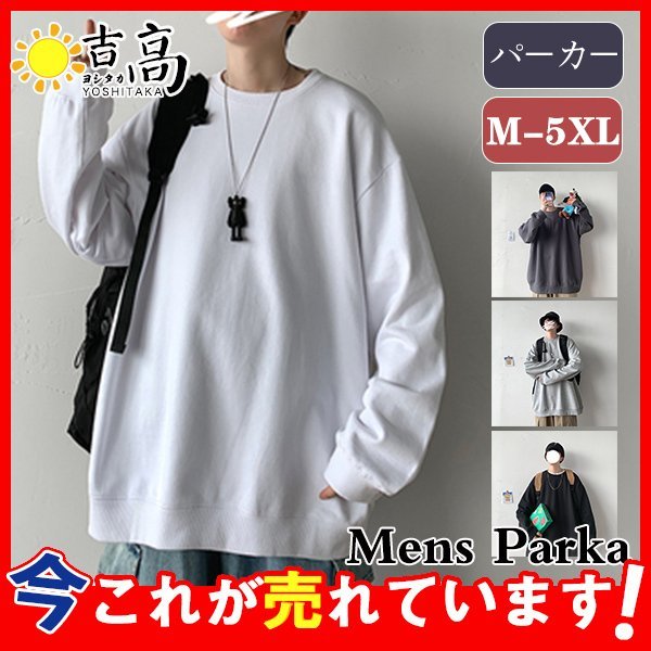 パーカー メンズ オーバーサイズ 無地 プルオーバー トレーナー トップス カジュアル おしゃれ ドロップショルダー ゆったり 春秋服 通学 学生