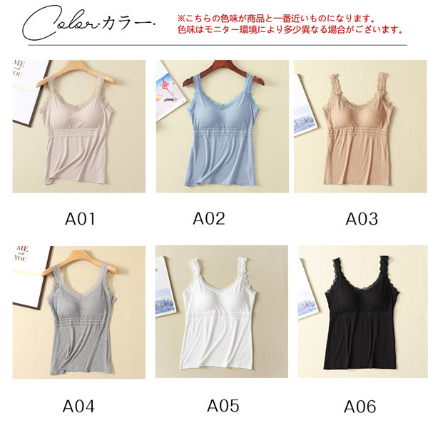 ブラトップ レディース 総レース カップ付 取り外し可能 キャミソール インナー タンクトップ トップス 重ね着 楽チン 無地 セクシー おしゃれ