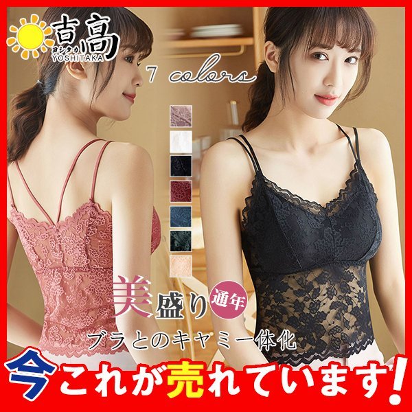 カップ付きキャミソール レース インナー タンクトップ 背中魅せ ブラトップ ショート丈 総レース 肌着 下着 アウトドア 着痩せ おしゃれ