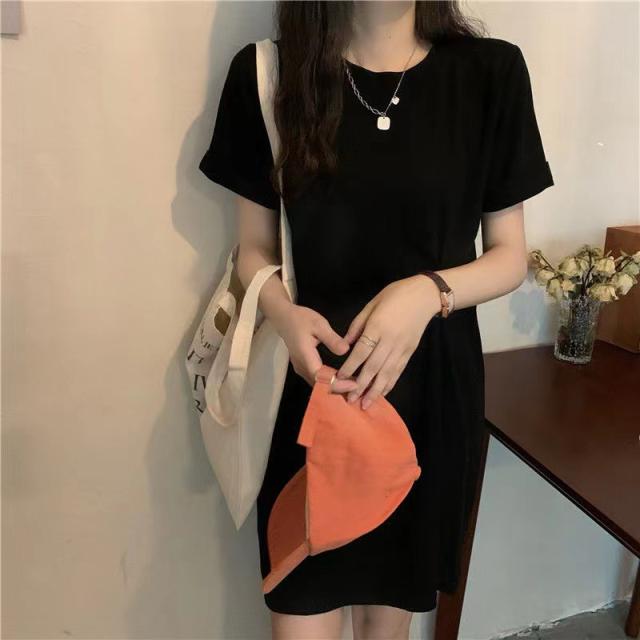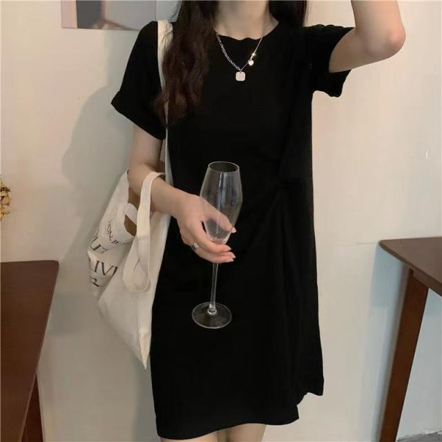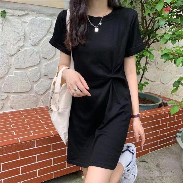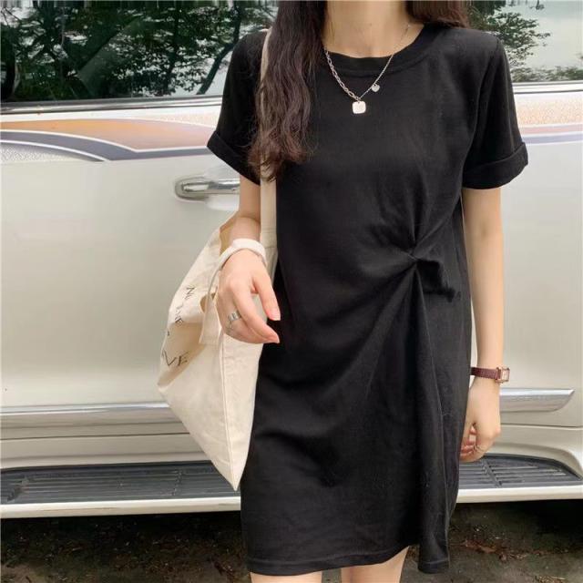Tシャツ ワンピース 半袖Tシャツ レディース チュニック 無地 シワ加工 薄手 細身 着痩せ 柔らか トップス ゆったり 体型カバー 普段着 夏服
