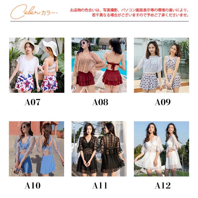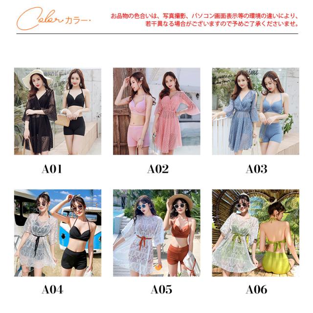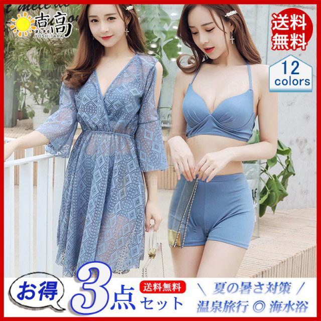 水着 レディース ビキニ 3点セット スイムウェア ママ水着 透かし彫り ラッシュガード 花柄 胸パッド ワイヤー 着痩せ リゾート セクシー 温泉