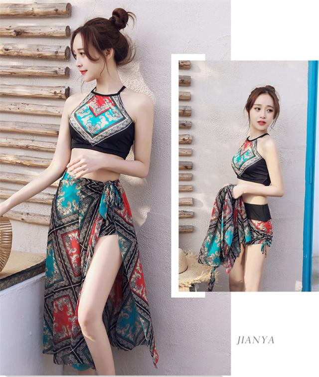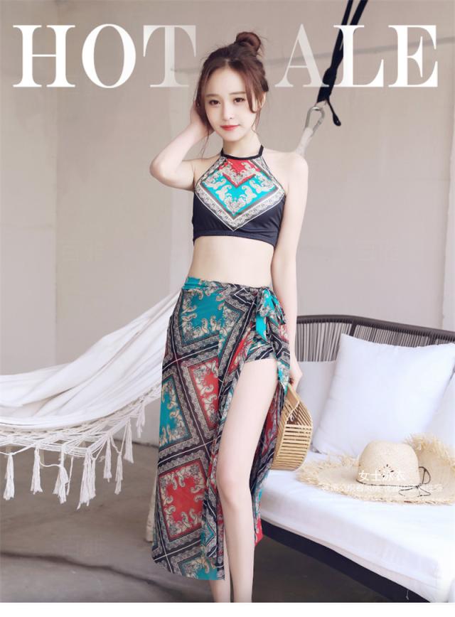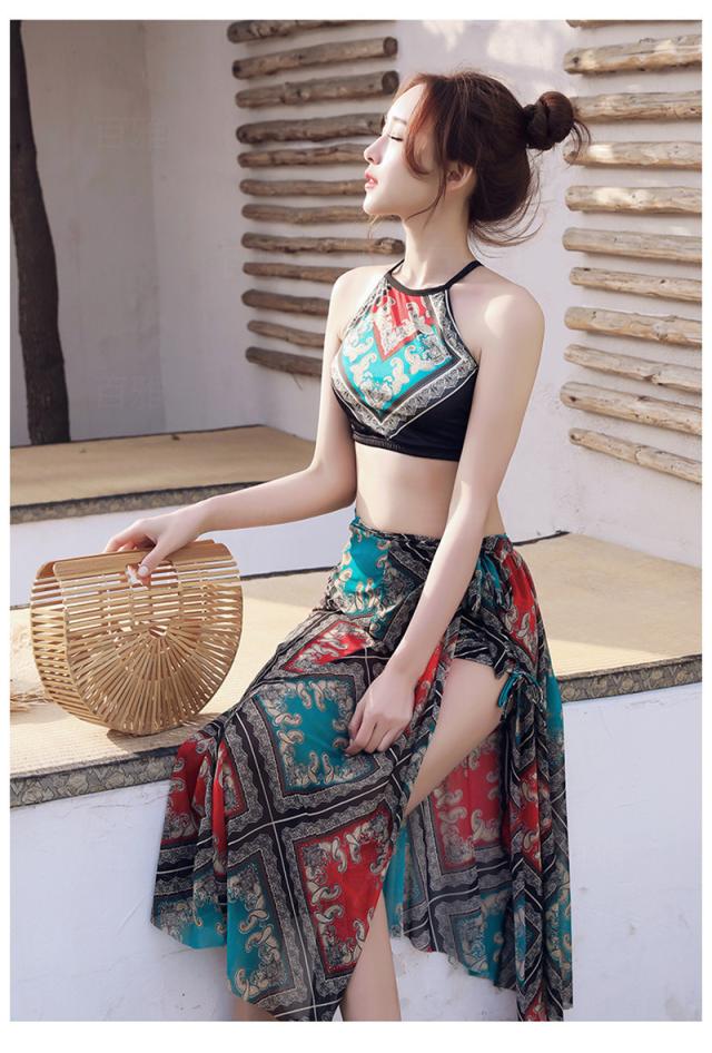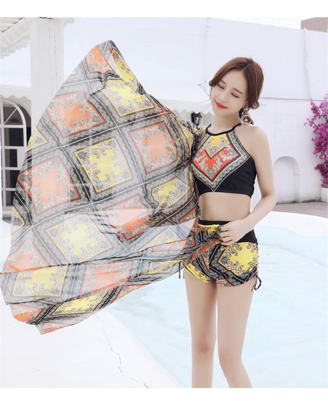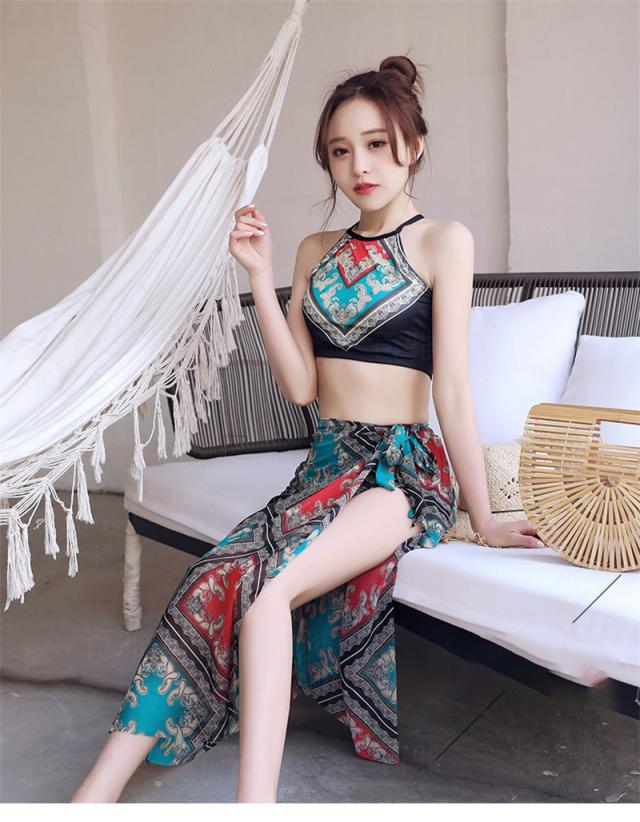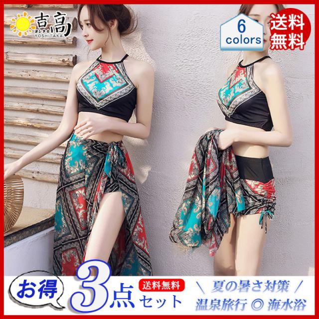 水着 レディース ビキニ 3点セット スイムウェア ストール エスニック 花柄 胸パッド ワイヤーなし 着痩せ ビーチ 盛れる 夏物 リゾート 旅行