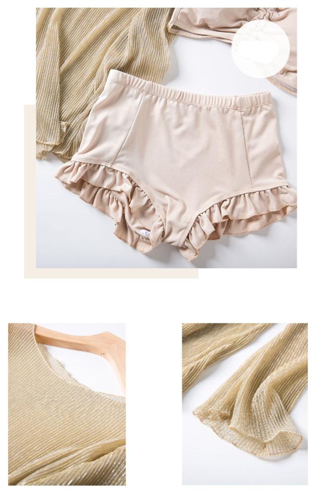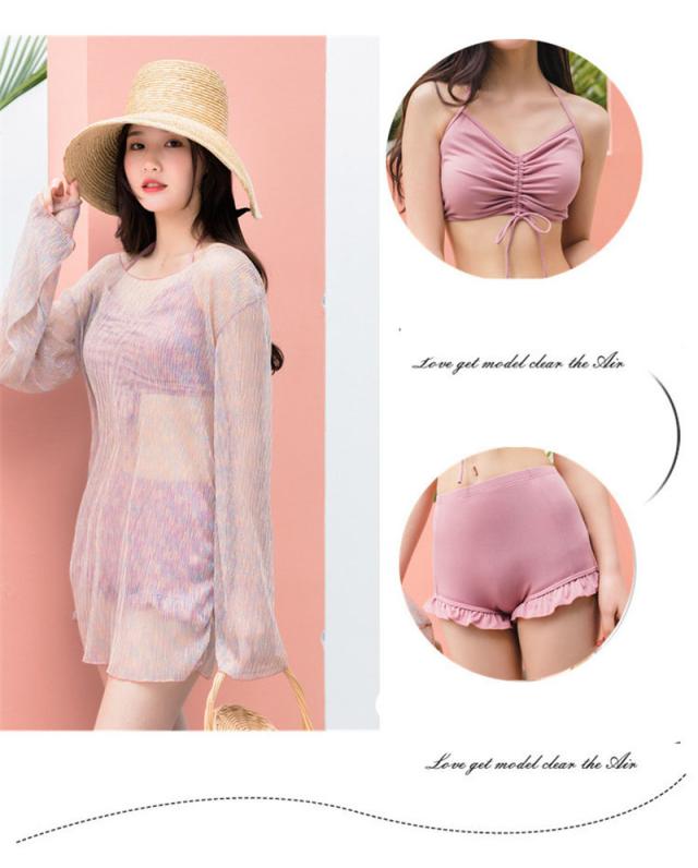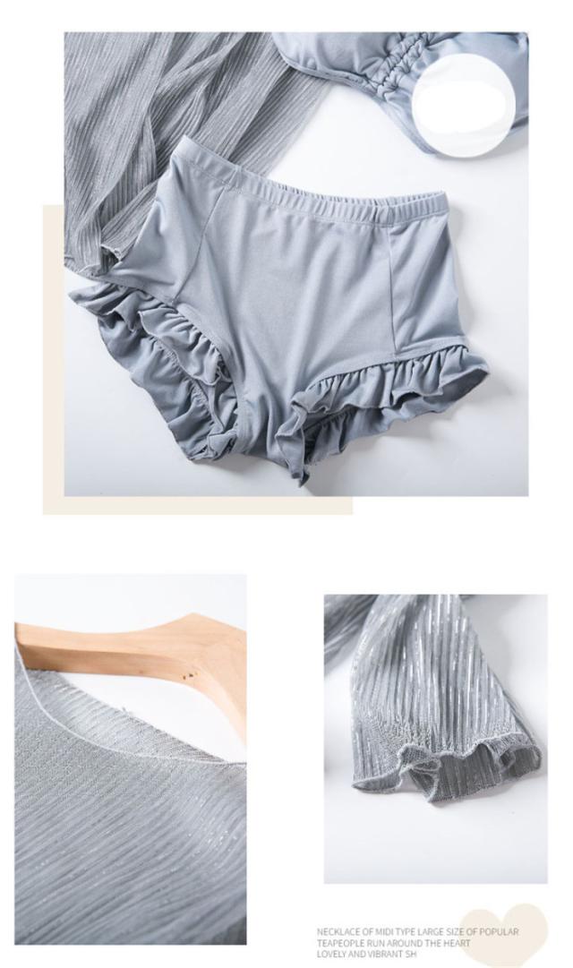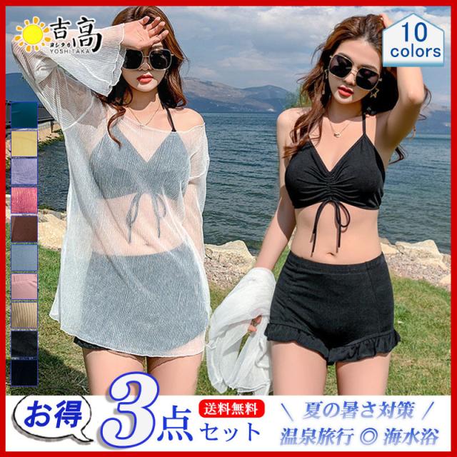 水着 レディース ビキニ 3点セット スイムウェア フリル ラッシュガード 体型カバー 上下セット 無地 カラー配色 ワイヤーなし 胸パッド 旅行