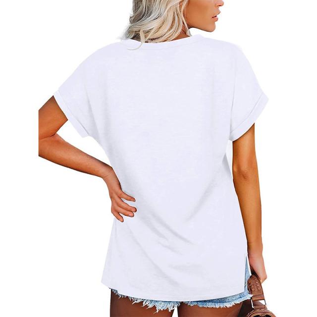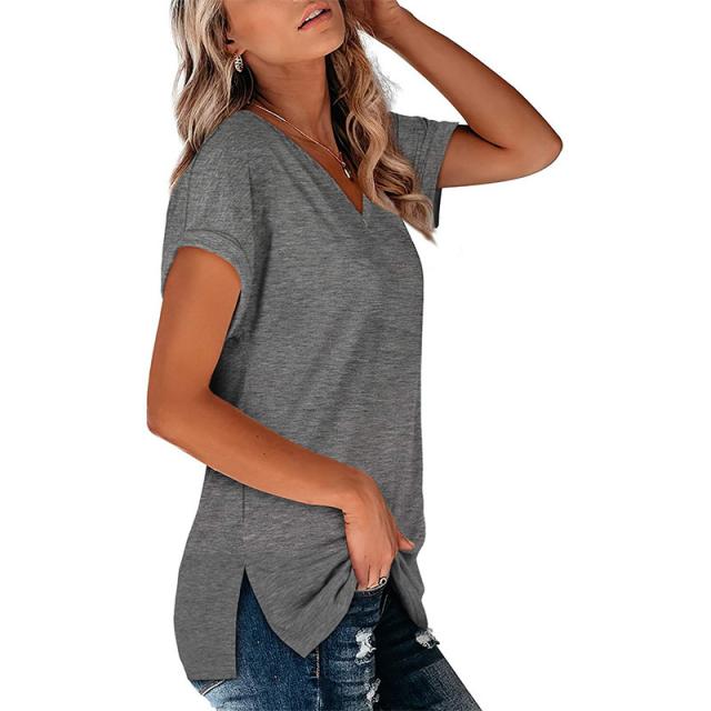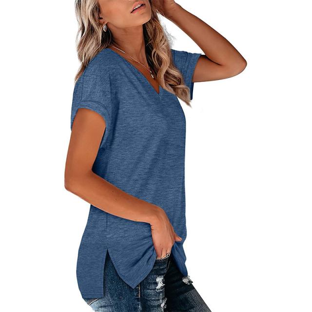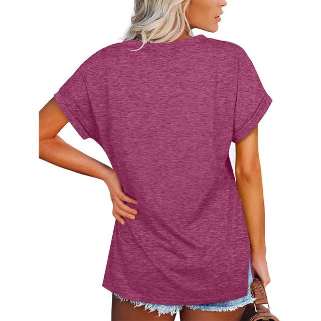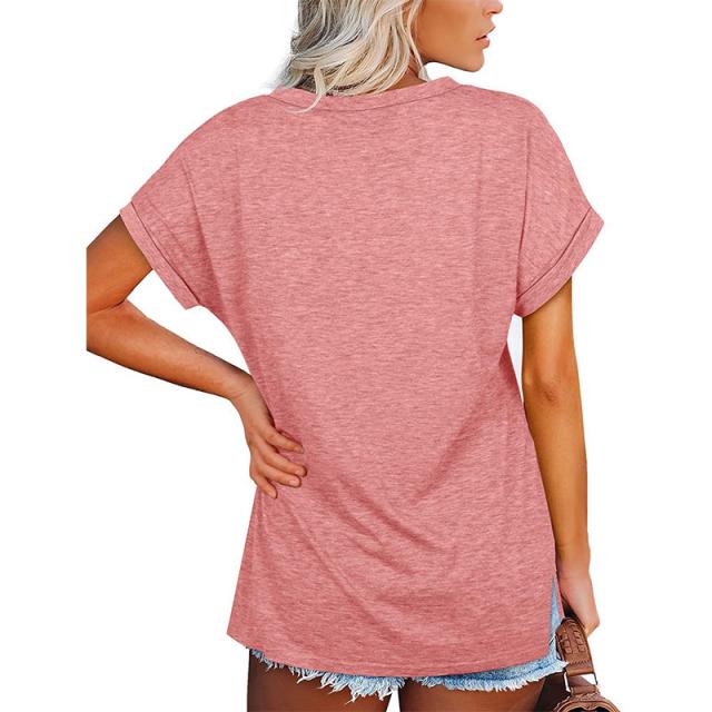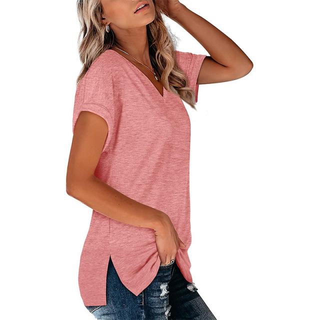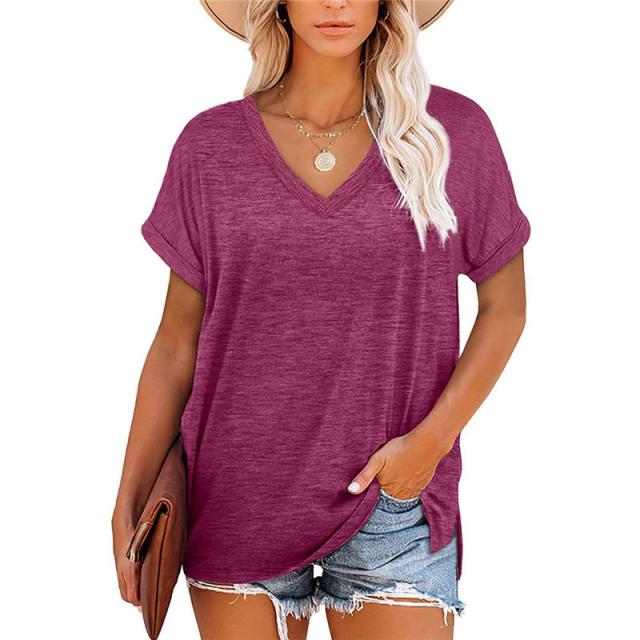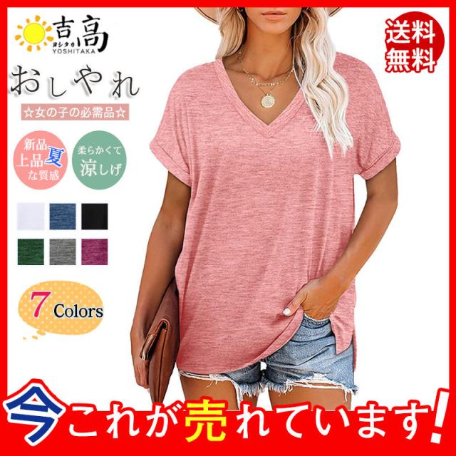 Tシャツ レディース 半袖 カジュアル カラー配色 無地 Vネック 5分袖 大きいサイズ カットソー ゆったり シンプル ストリート おしゃれ 夏服