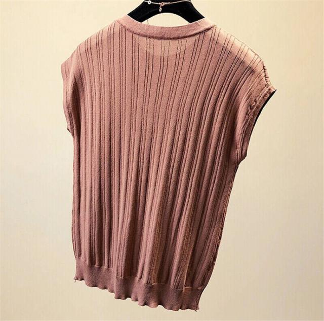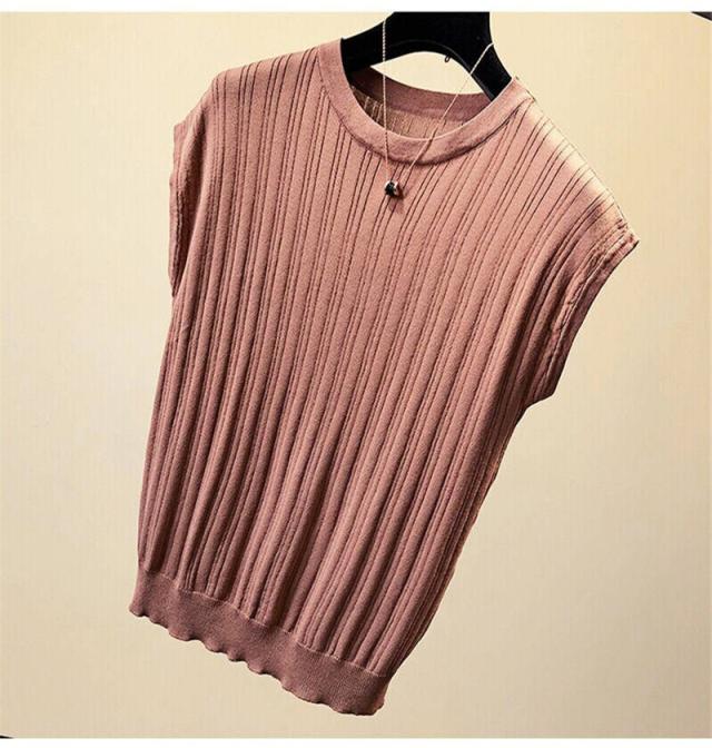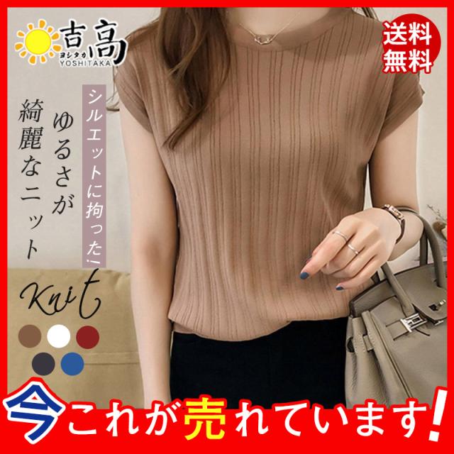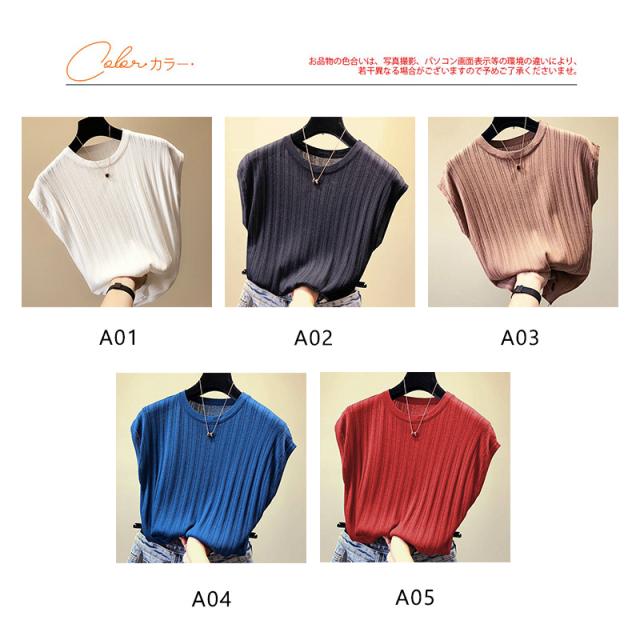 送料無料 Tシャツ レディース ニット リブニット 無地 ノースリーブ トップス おしゃれ 半袖Tシャツ カラー配色 カットソー カジュアル 人気