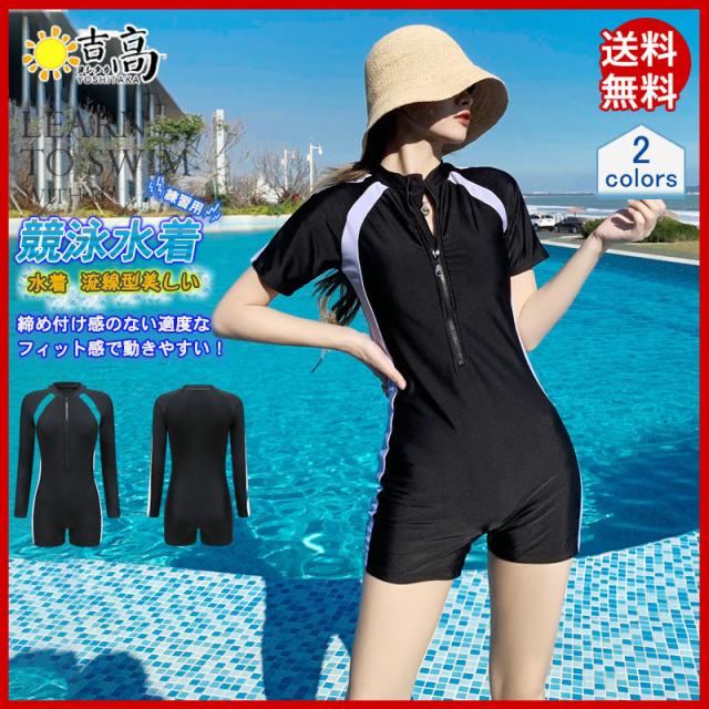 新作 水着 レディース 競泳 競泳水着 スイムウェア フィットネス 半袖 長袖 オールインワン ジップアップ パッド付き 着痩せ 少女 速乾 ビーチ