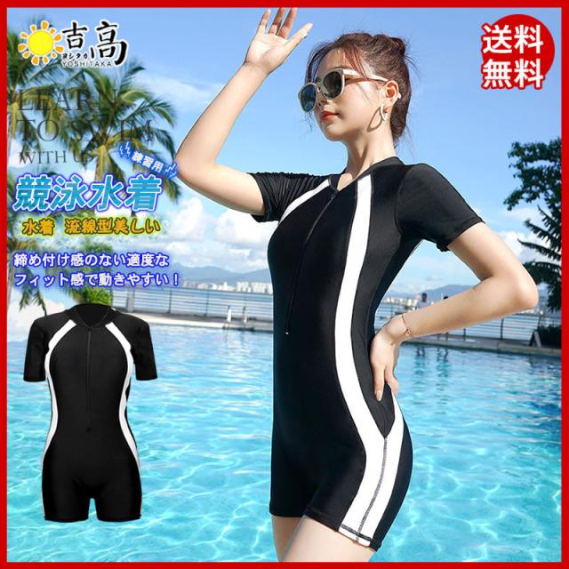競泳水着 レディース 水着 フィットネス水着 オールインワン スイムウェア ジップアップ パッド付き 体型カバー 着痩せ 速乾 韓国風 部活 スクール