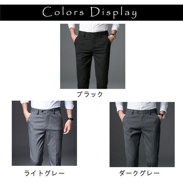 商品詳細:カラー:/ブラック/ライトグレー/ダークグレーサイズ:/28/29/30/31/32/33/34/36/38■商品説明■シンプルで着こなしの幅が広がるスラックスパンツ!シルエットラインも美しく、平日のカジュアルスタイル、ジャケットを羽織ってのビジネスカジュアルにも使えます。定番色展開されており、今年の夏秋に各カラーを持っているだけで様々なシーンで活躍すること間違いなし!合わせやすく新しい大人スタイルのコーディネートを演出してくれます。■素材コットン、ポリエステル、その他■キーワードチノパン メンズ スキニーパンツ スキニー ストレッチ 綿 ロング丈 9分丈 ロングパンツ チノ スキニー 伸縮 スマホポケット ゴルフウェア カラーパンツ スリム 細身 美脚 デニム ジーンズ チェック柄 ストライプ柄 迷彩柄 ゴルフ ゴルフウェア ゴルフパンツ メンズファッション テーパード オールシーズン 履き心地 きれい 秋 秋服 秋物 秋新作 大きいサイズ