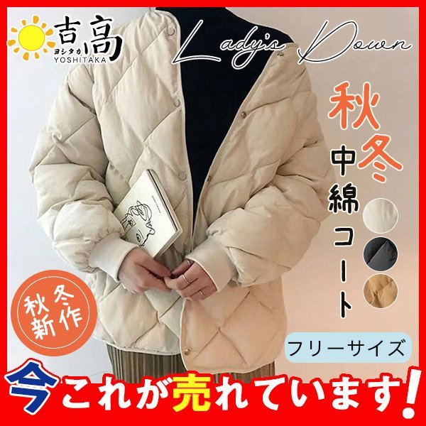 ジャケット レディース キルティングジャケット ダウンジャケット 中綿ジャケット アウター コート ライトアウター 保温 ノーカラー 防寒