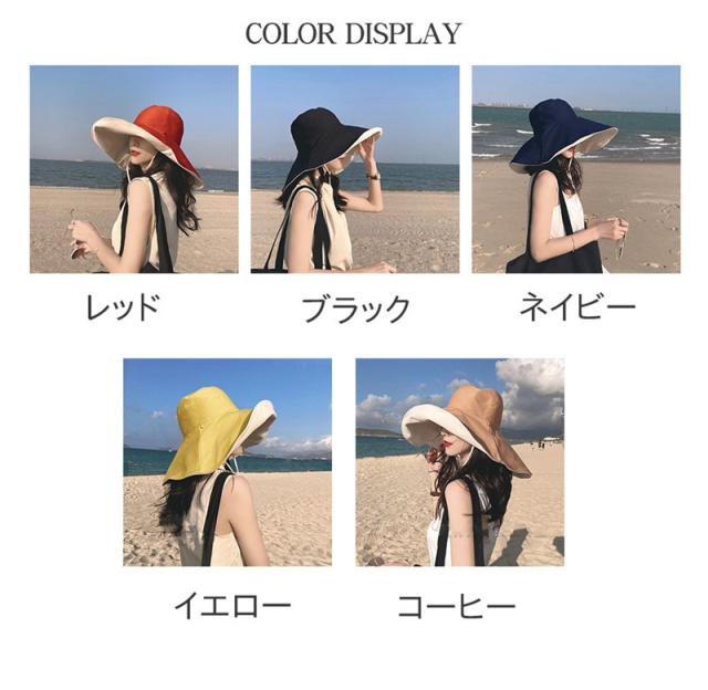 帽子レディース サファリハット 折りたたみ 両面とも使える UVカット 日焼け防止 日よけ UV対策 アウトドア 小顔効果 ひも付き 飛ばない 自転車