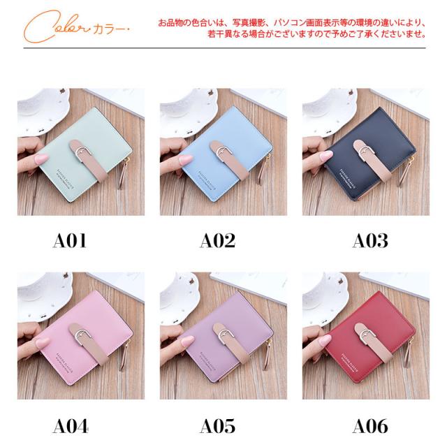 財布 レディース 二つ折り ミニ財布 ベルトホック留め ウォレット 小型財布 小銭入れ カード入れ 薄い シンプル ギフト 可愛い カラフル おしゃれ