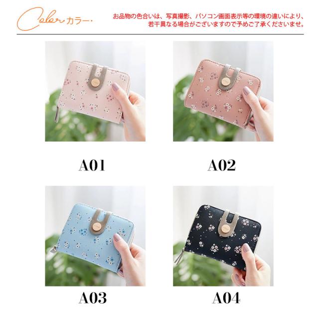 新作 財布 レディース ミニ財布 二つ折り ラウンドファスナー 小型財布 花柄 バックル コンパクト 軽い 大容量 小銭入れ カード ギフト 可愛い