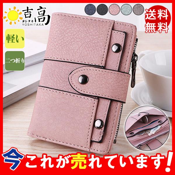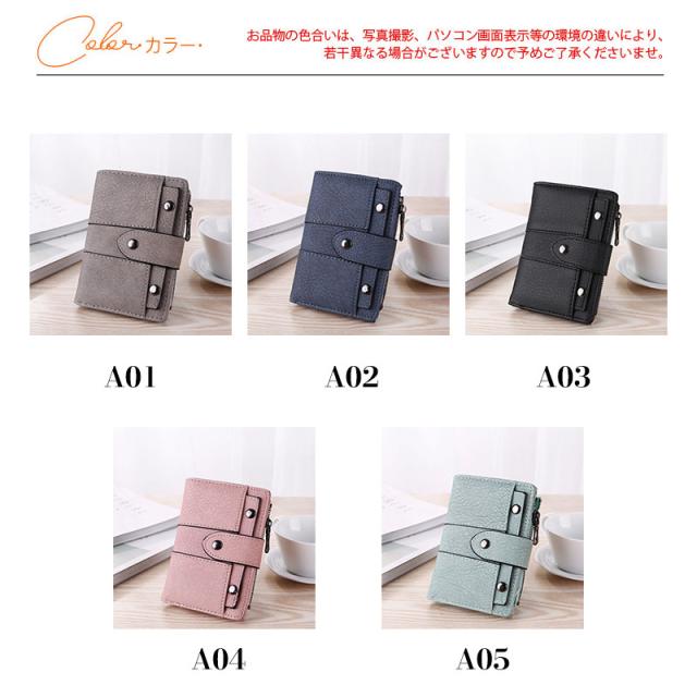 財布 レディース ミニ財布 ウォレット 二つ折り ベルトホック留め リベット レトロ 無地 カード入れ 小銭入れ 大容量 多機能 可愛い おしゃれ