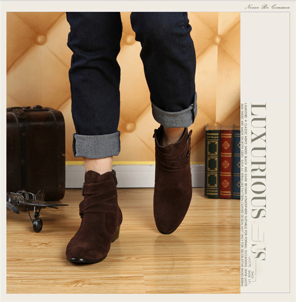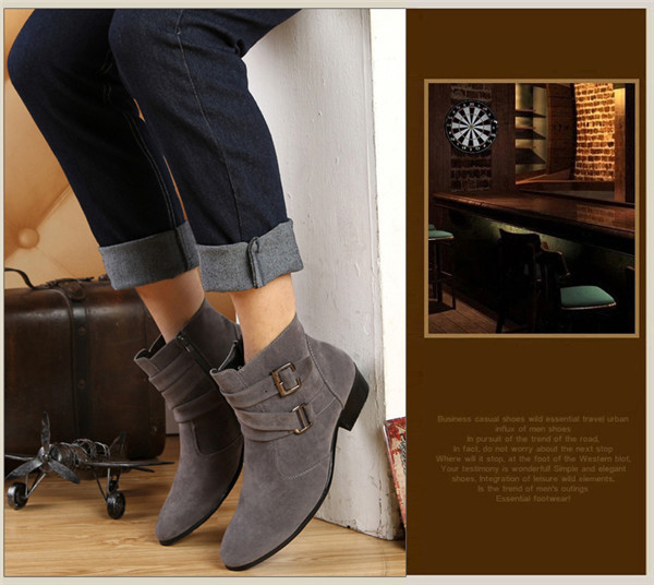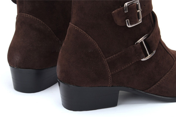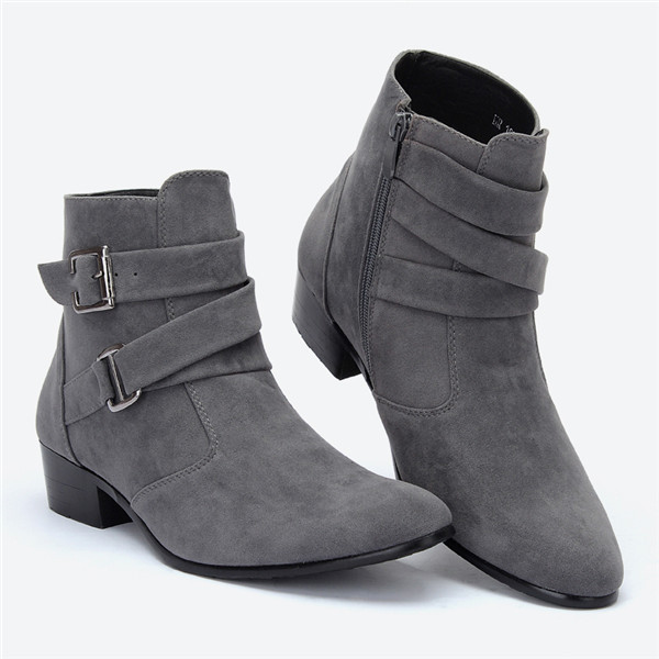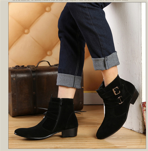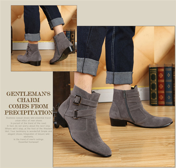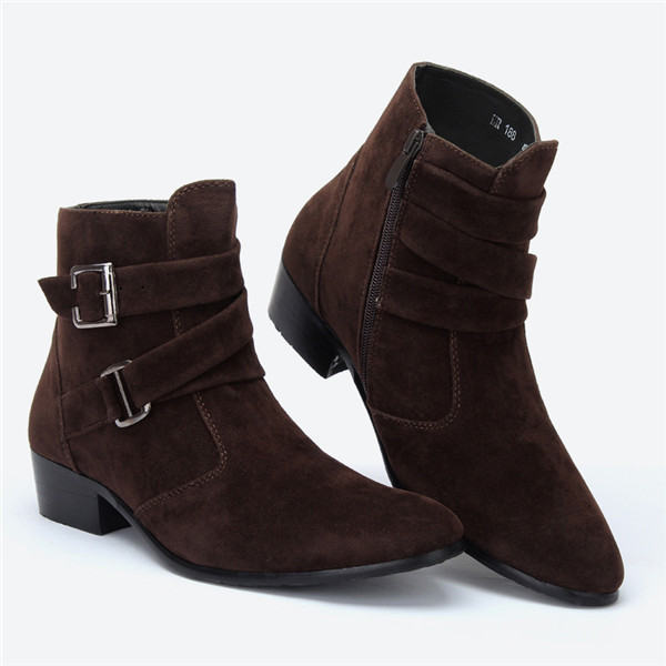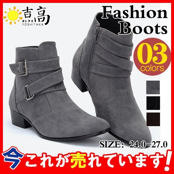 ビジネスシューズ ショートブーツ メンズ サイドジップ ハイヒール 太ヒール ベルト付き 厚底 スエード おしゃれ エンジニア レザーブーツ