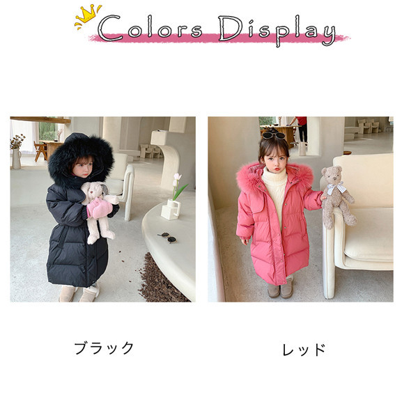 ダウンコート キッズ フード付き ロング丈 ファー付き ジャケット ダウンジャケット 中綿コート 子供用 女の子 アウター 暖かい 防寒着 秋冬