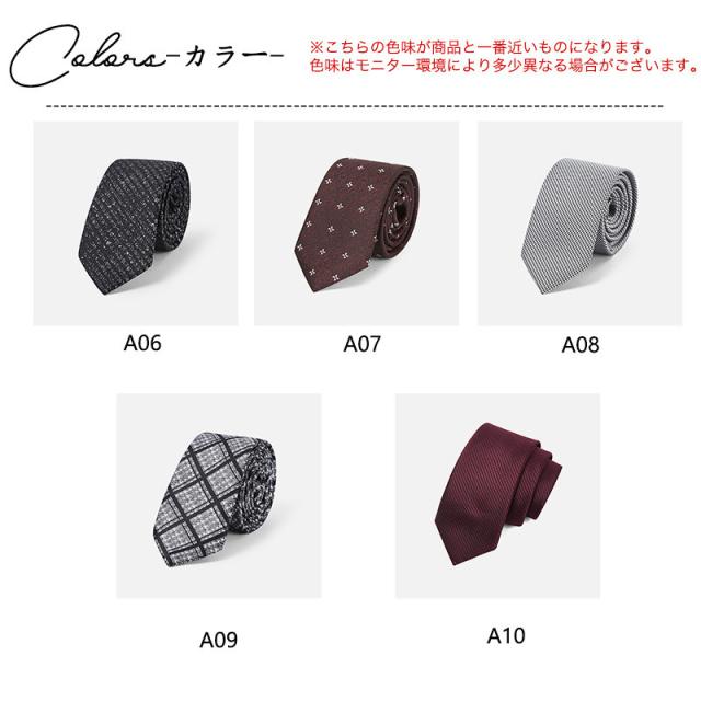 商品詳細カラー:/A01/A02/A03/A04/A05/A06/A07/A08/A09/A10/サイズ:/フリーサイズ/■商品説明◎ネクタイはビジネスマンにとって毎日欠かせないものです。◎ワイシャツとのコントラストで大人のオシャレの幅が広がるシリーズです。◎ビジネスネクタイであれば清潔感がありながら信頼感を与える知的なデザイン。◎もちろん、結婚式、 二次会、ビジネス、イベント、パーティー、入学式、忘年会などではフォーマルシーンで使えるおしゃれなデザインです。◎父の日&クリスマスプレゼントもお勧めします。■製品仕様【素 材】ポリエステル100%【サイズ】幅:約6cm 長さ:約145cm■キーワード【着用層】20代 30代 40代 50代 60代 70代 80代 メンズ 男性 紳士 営業 外回り 父親【着用シーン】リモートワーク テレワーク 在宅勤務 在宅ワーク デジカジ フォーマル 卒業式 卒園式 入園式 お受験 冠婚葬祭 法事 就活 パーティー クールビズ 婚活 涼しい 春夏 秋冬 ステージ衣装 正装【プレゼント/ギフト】父の日 成人式 バレンタインデー 就職祝い 転職祝い 誕生日