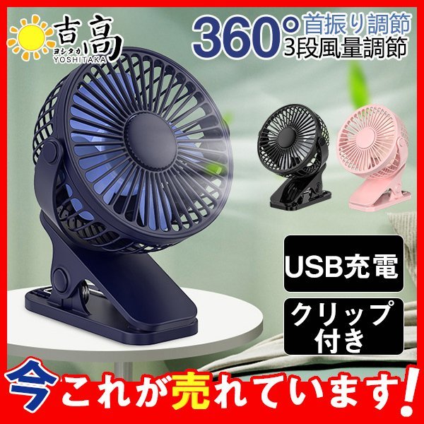 卓上扇風機 USB 首振り 携帯 扇風機 USB充電 クリップ付き 3段風量調節 ミニ扇風機 360°調節 車載 車用 熱中症対策 ひんやり アウトドア