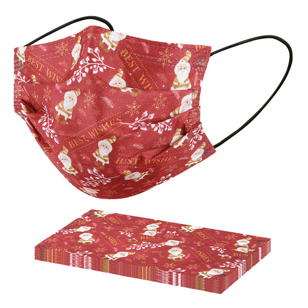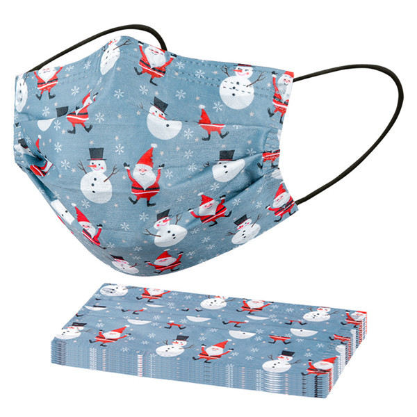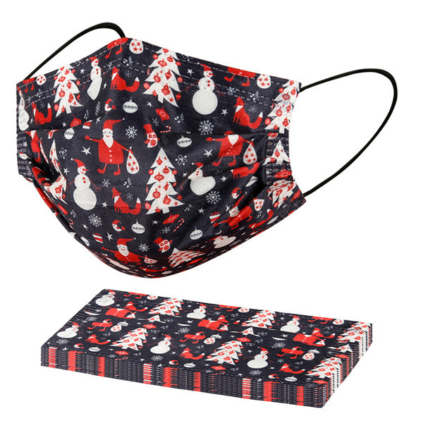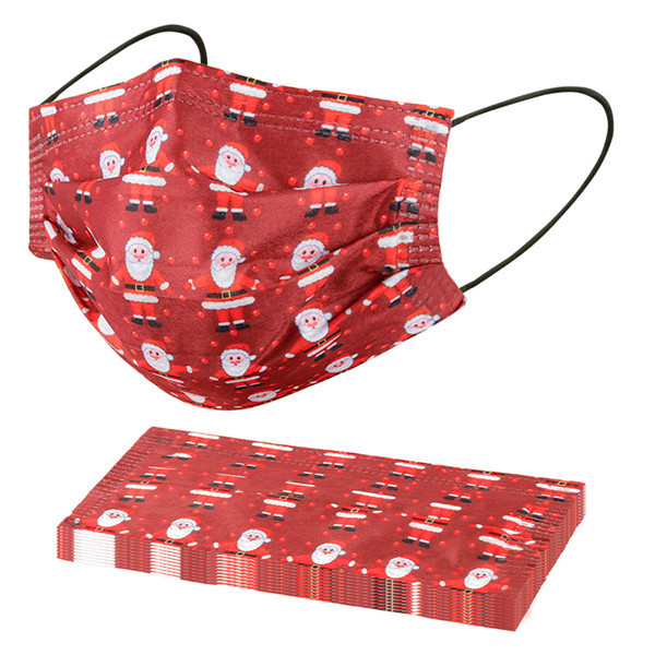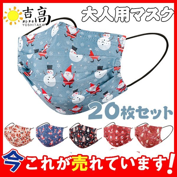 マスク クリスマス 使い捨て 20枚 不織布マスク 雪柄 サンタクロース 大人用 三層構造 防塵 男女兼用 文化祭 新年会 通学 通勤 プレゼント