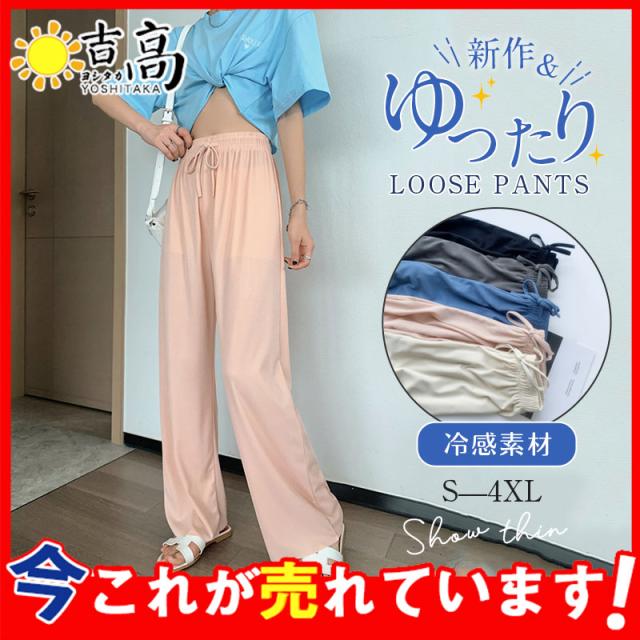ワイドパンツ レディース ガウチョパンツ 冷感素材 イージーパンツ スカーチョ ヴィンテージ ゆったり きれいめ 長ズボン ハイウエスト 無地 薄手