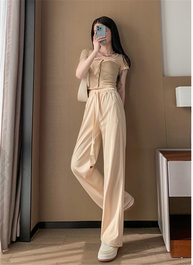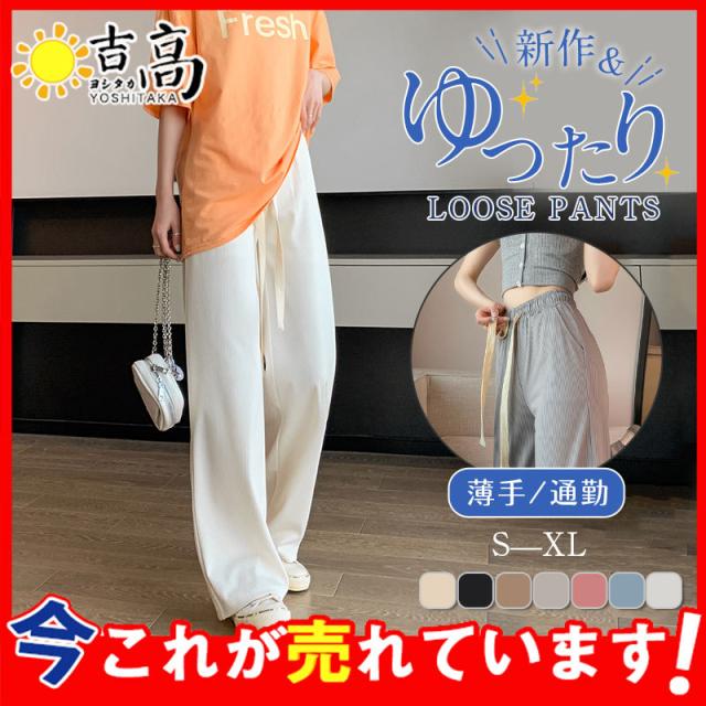 新作 ワイドパンツ レディース 冷感素材 イージーパンツ 無地 スウェットパンツ ウエストゴム スラックス 長ズボン 薄手 涼しい スリム 快適 夏服