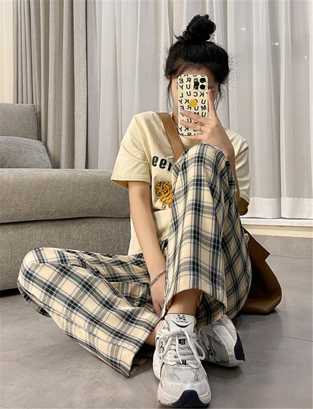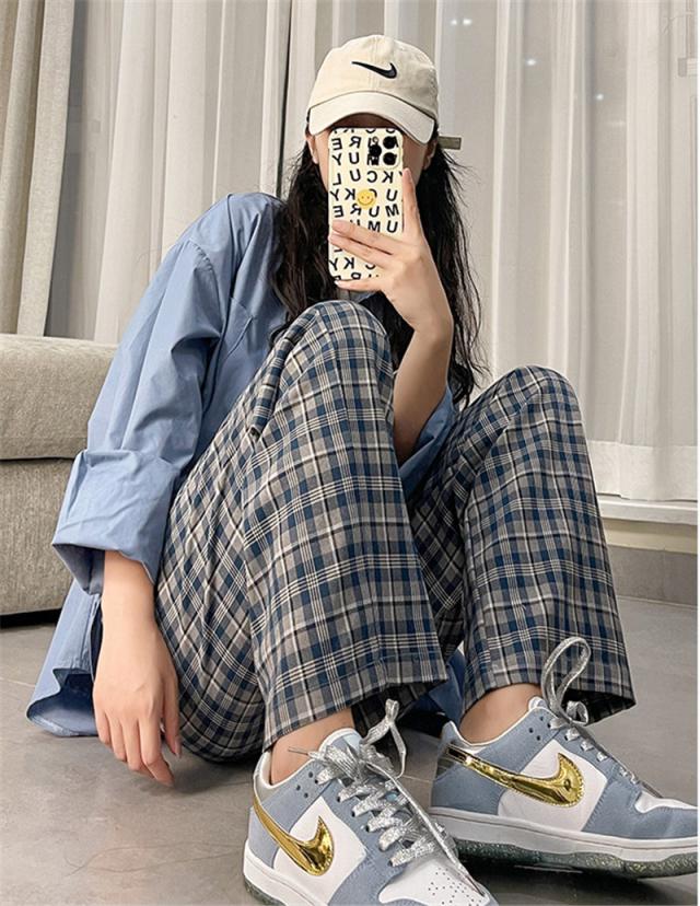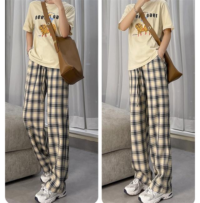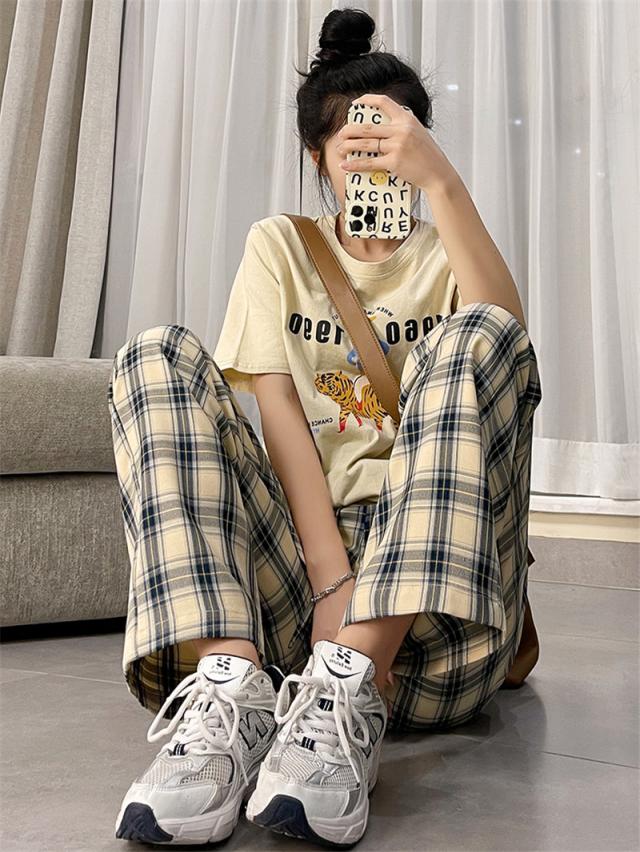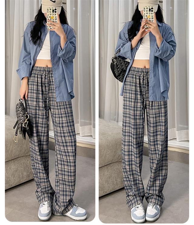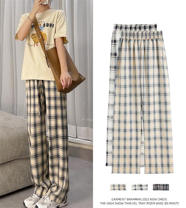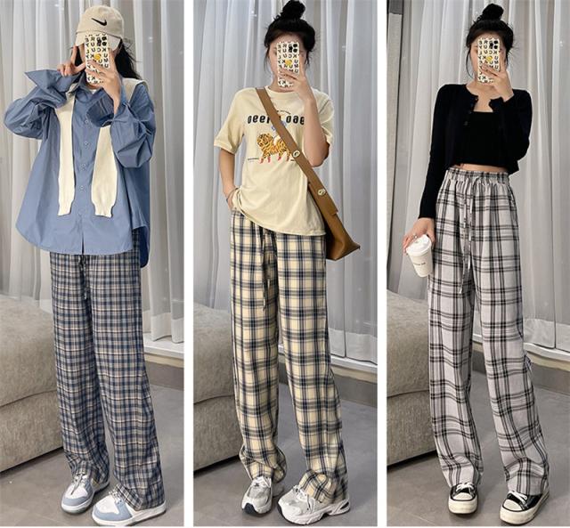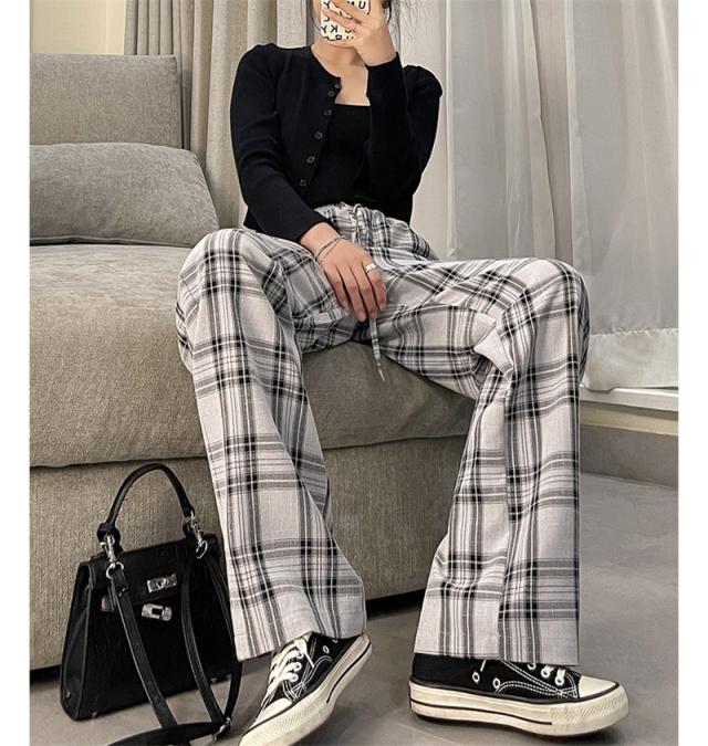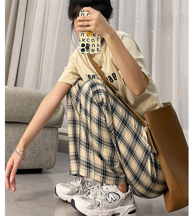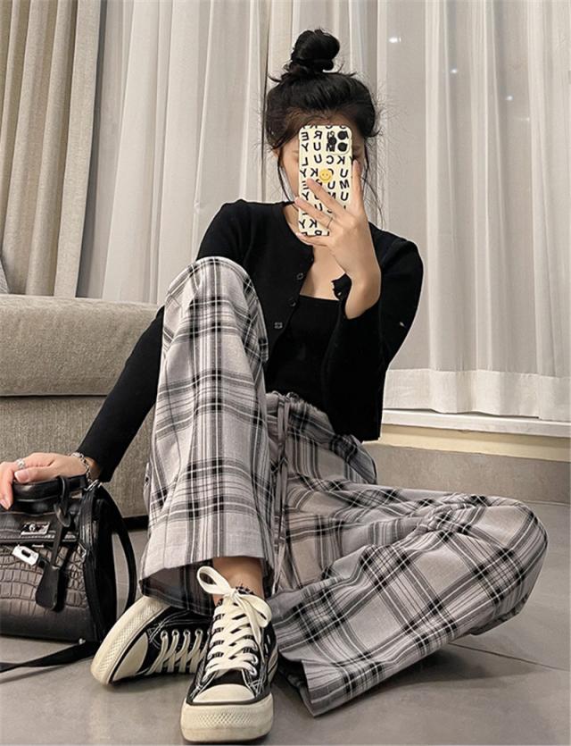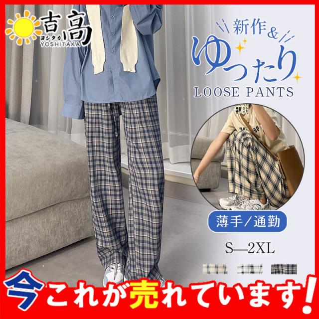 ワイドパンツ レディース イージーパンツ チェック柄 ガウチョパンツ 長ズボン ハイウェスト 大きいサイズ ゆったり 着痩せ 薄手 おしゃれ 通勤