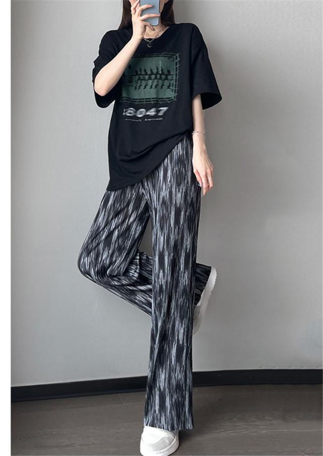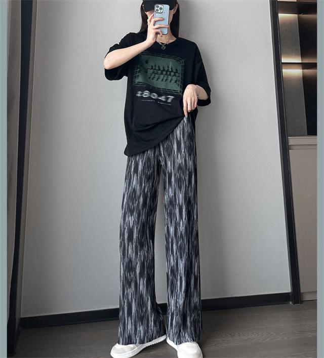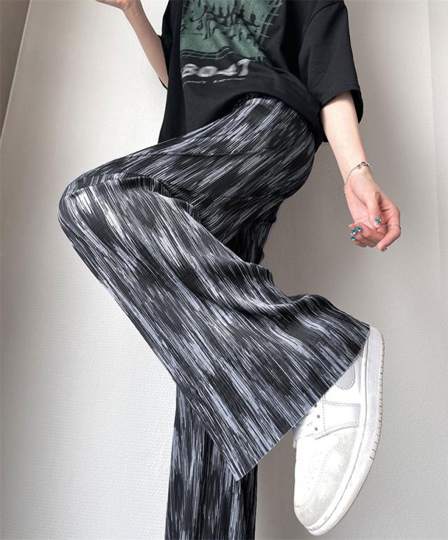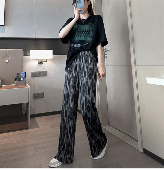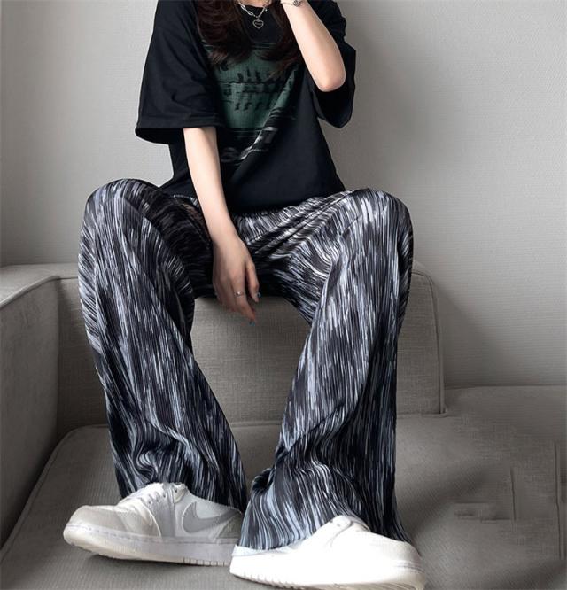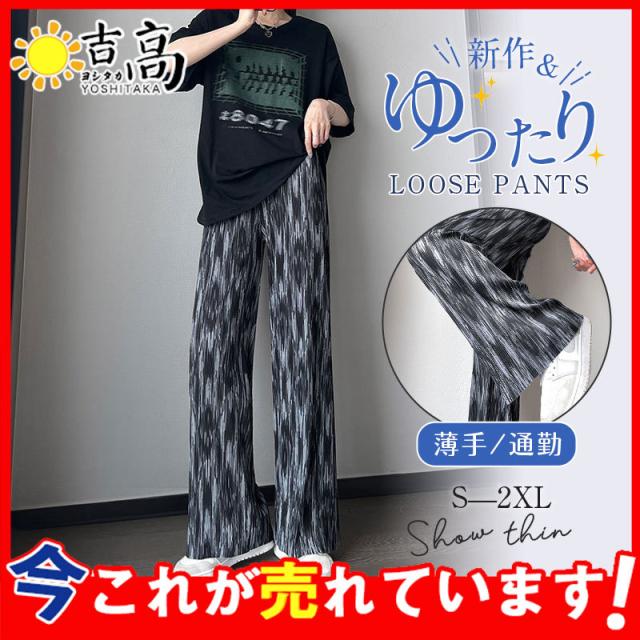 ワイドパンツ レディース 冷感素材 ガウチョパンツ イージーパンツ 長ズボン 絞り染め ハイウェスト ゆったり おしゃれ 着痩せ 薄手 通勤 オフィス