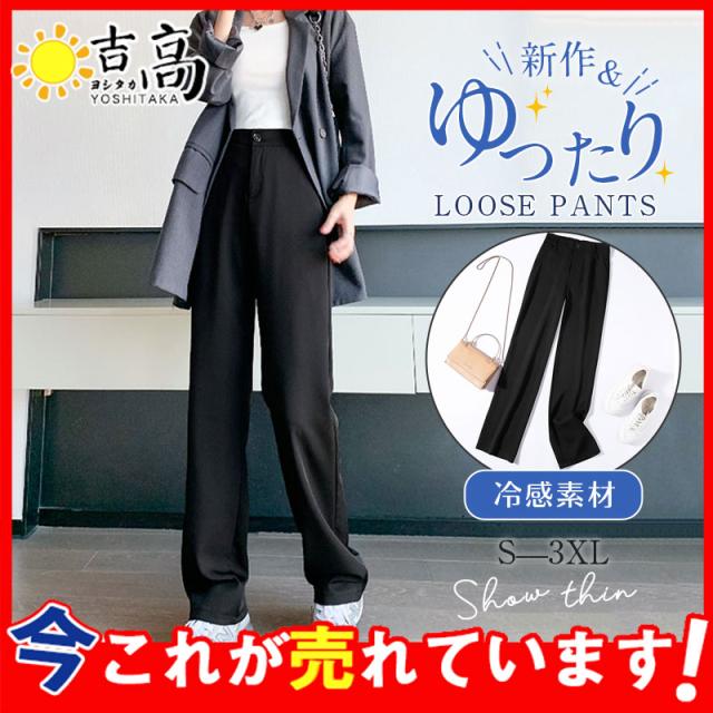 ワイドパンツ レディース ガウチョパンツ 冷感素材 イージーパンツ 長ズボン ストレッチ ハイウェスト ゆったり おしゃれ 薄手 春夏 無地 通勤