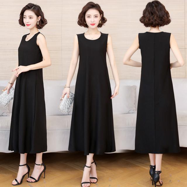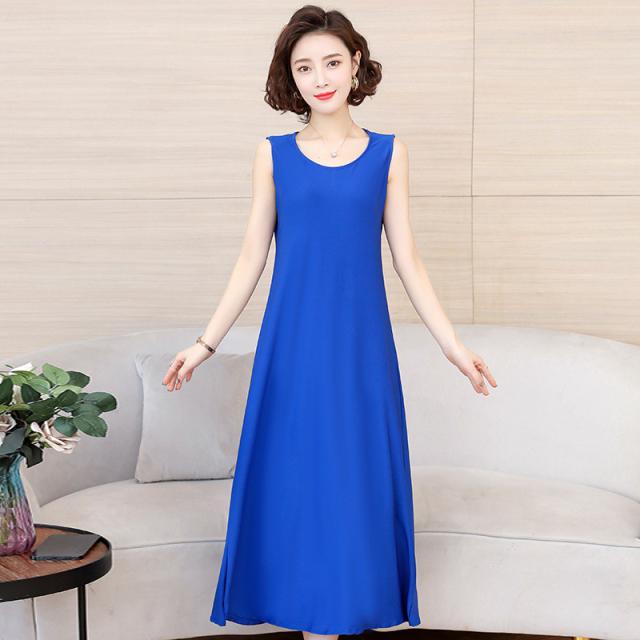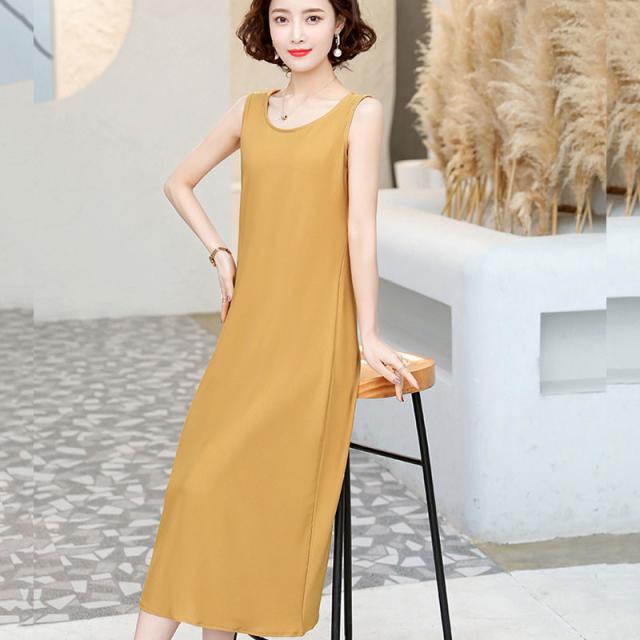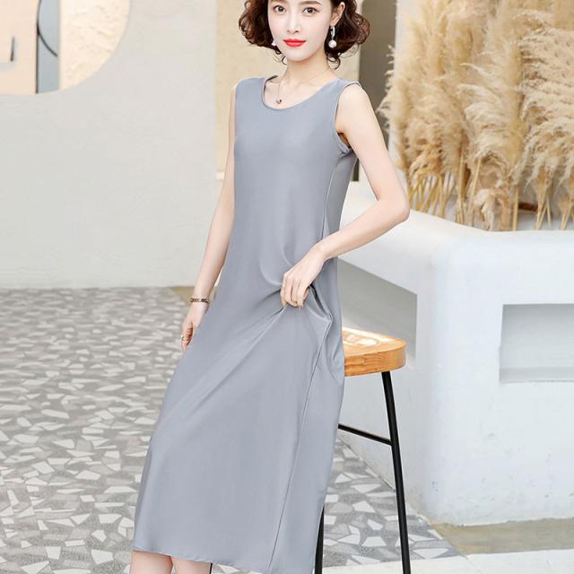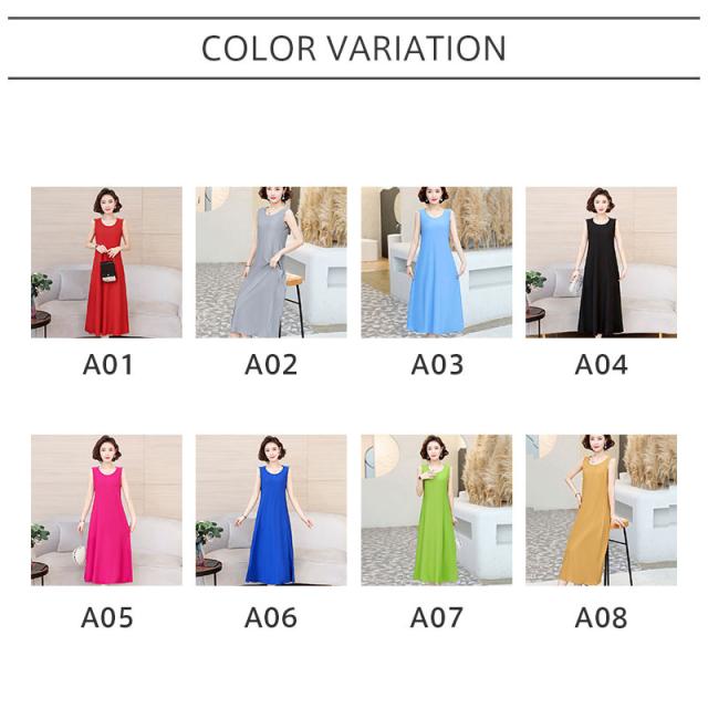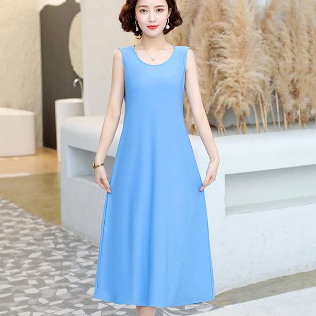 ワンピース レディース ロング ノースリーブ チュニック ブラウス 無地 カラー配色 Uネック シンプル 大きいサイズ ゆったり 着痩せ 薄手 普段着