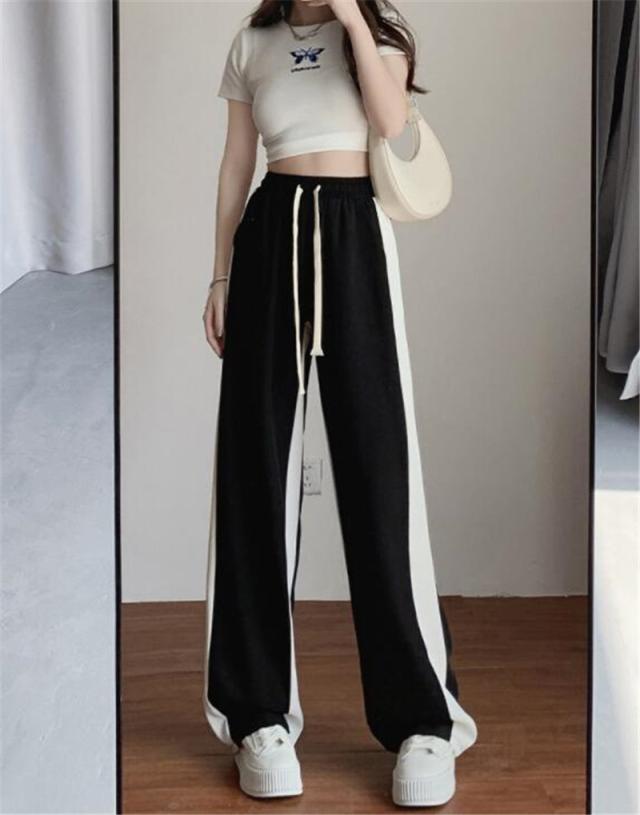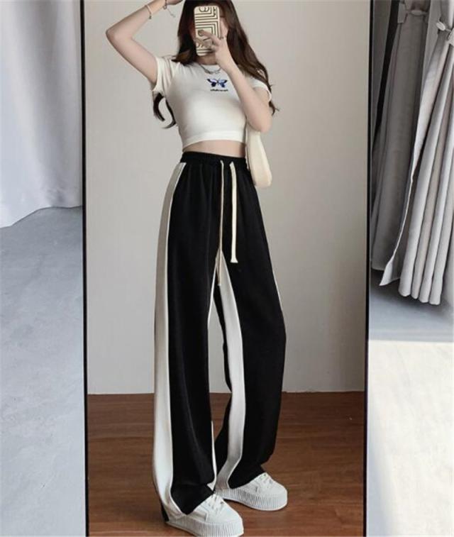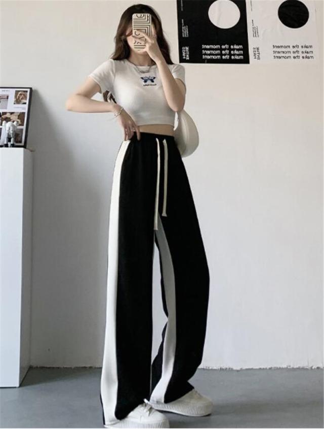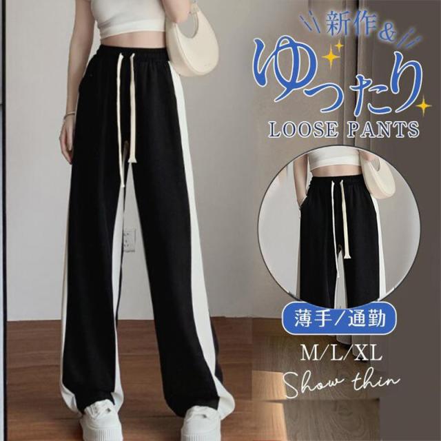 ワイドパンツ レディース 長ズボン イージーパンツ 接触冷感 ウエストゴム ハイウェスト 黒白 着痩せ 薄手 スリム おしゃれ ロング 夏服 オフィス