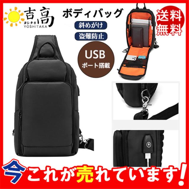 ボディバッグ メンズ ショルダーバッグ 小物入れ ウエストポーチ 肩掛け 斜めがけ 防水 多機能 大容量 高級感 USBポート付 通学 通勤 おしゃれ