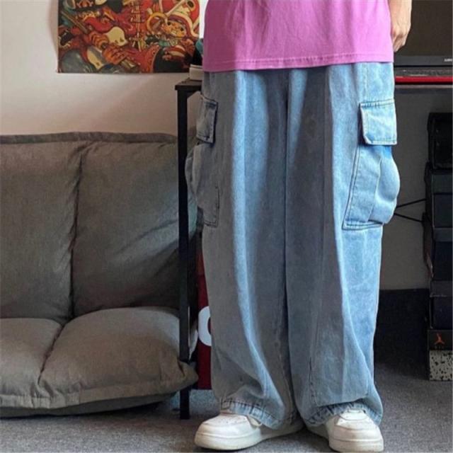 デニムパンツ ジーンズ メンズ ワイドデニムパンツ 太め 極太 大きいサイズ ゆったり 無地 夏服 韓国風 オールシーズン ストリート おしゃれ 人気