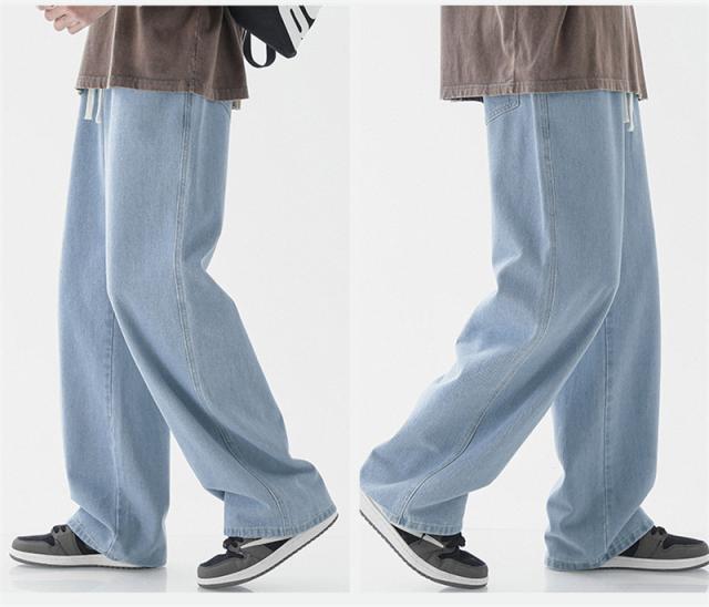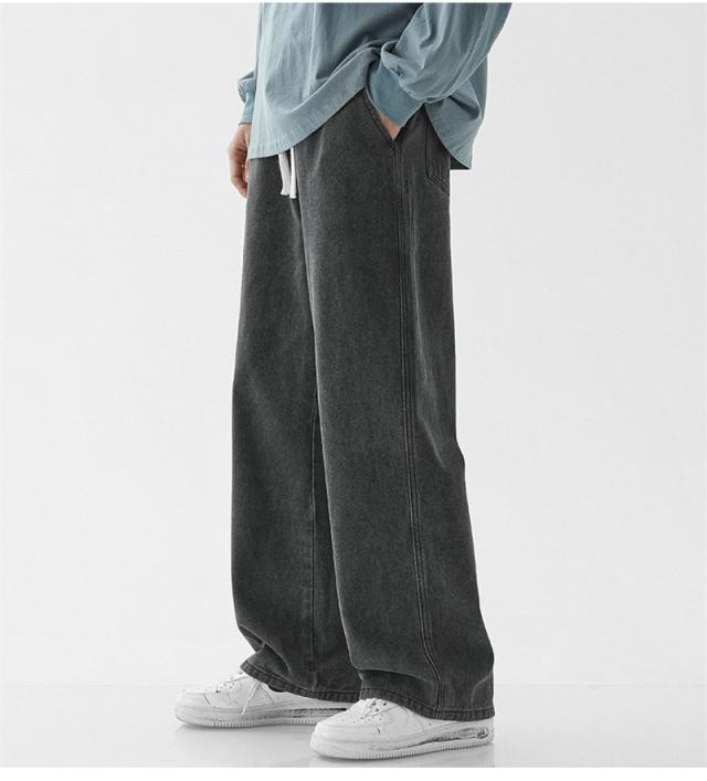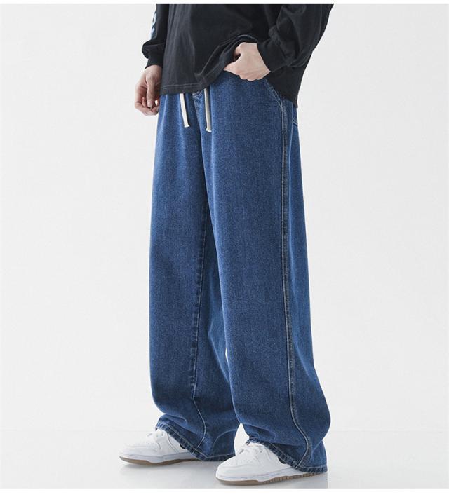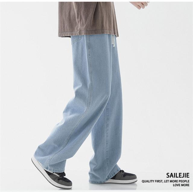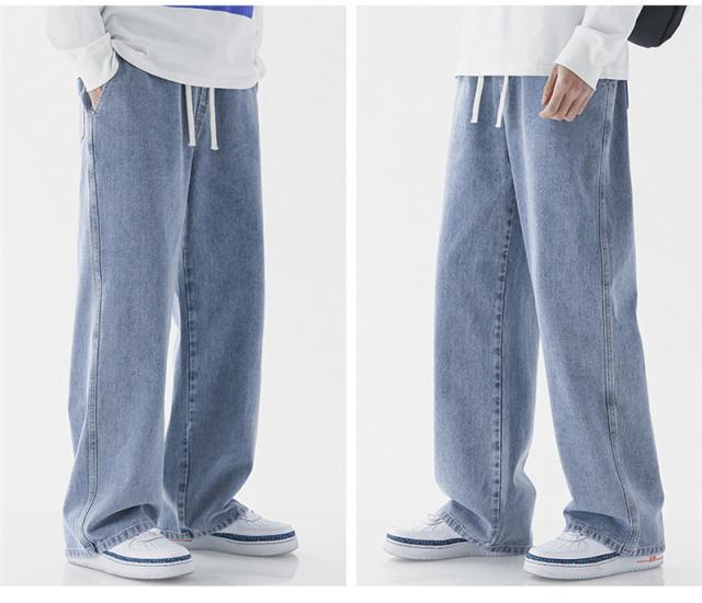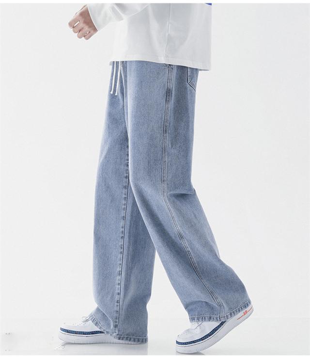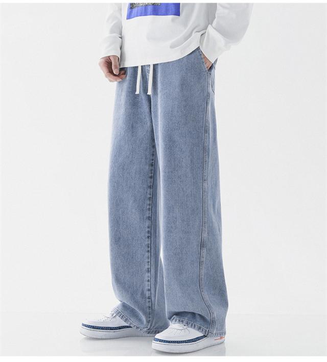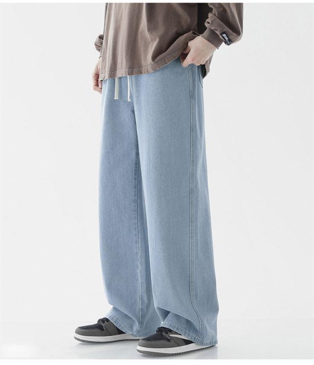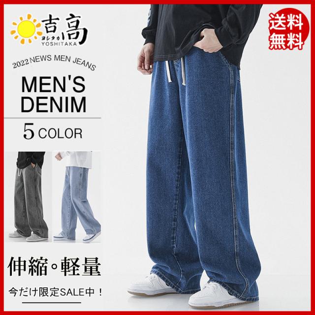 デニムパンツ ジーンズ メンズ スリム ウエスト紐 ユーズド加工 大きいサイズ ゆったり スリムフィット スキニー 着痩せ 薄手 夏服 無地 おしゃれ