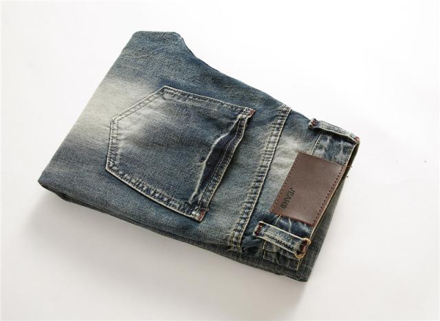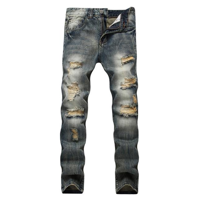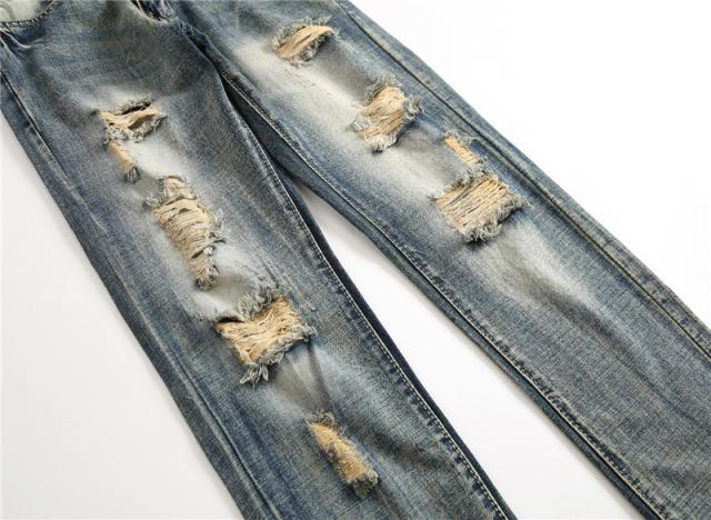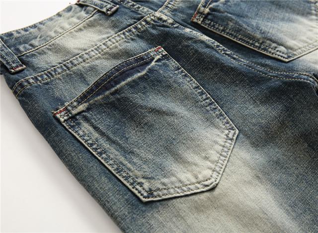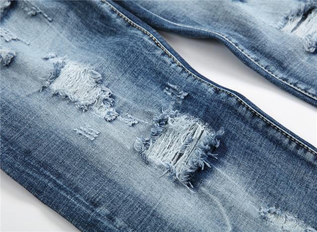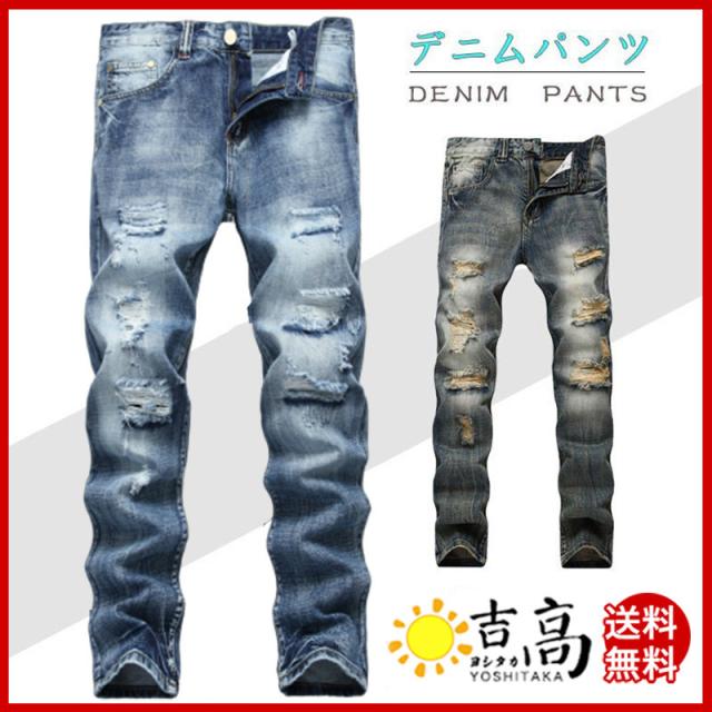 デニムパンツ メンズ ジーンズ スキニー 欧米風 パンツ ストレッチ スリム ボトムス ズボン ダメージ加工 ユーズド加工 着痩せ 無地 大きいサイズ