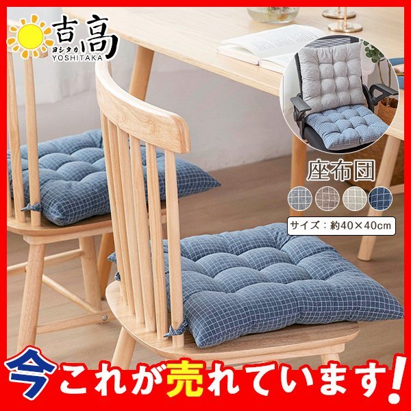 座布団 椅子用 クッション シートクッション 在宅勤務 低反発 座布団 紐付き 滑りにくい チェック柄 肉厚 正方形 座椅子 北欧 在宅ワーク