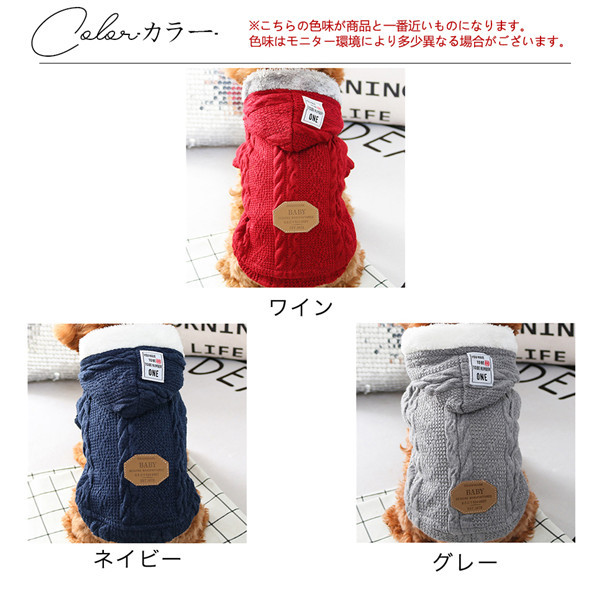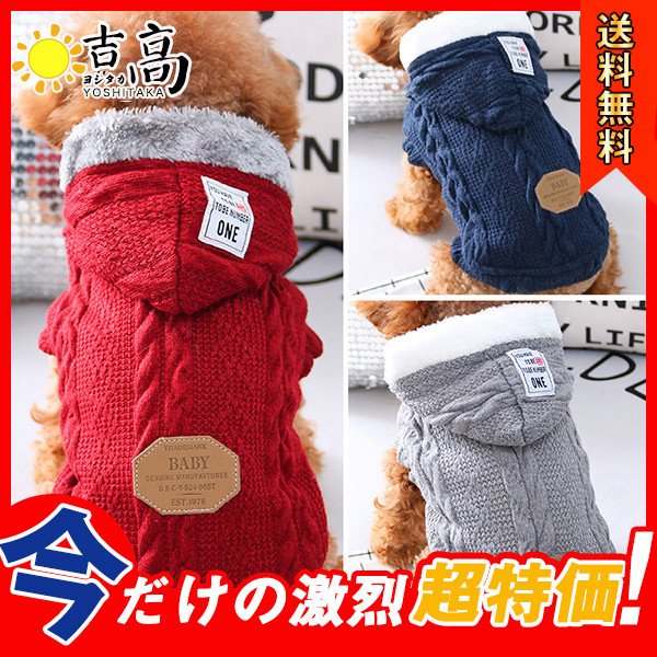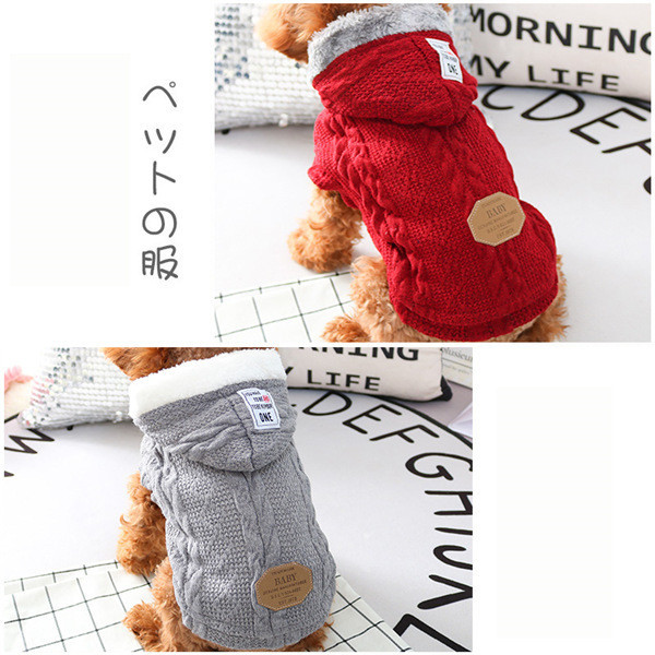 送料無料 犬 服 犬服 犬の服 ニット セーター 犬用 ニット 秋冬 裏起毛 裏ボア フード付き 可愛い おしゃれ あたたかい 暖かい 室内犬用
