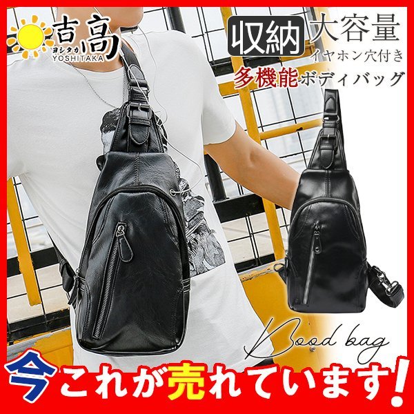 ボディバッグ メンズ ショルダーバッグ 大容量 斜めがけ バッグ 革 PU レザー 肩掛け お出かけ おしゃれ ボディーバッグ 収納 通勤 通学 旅行