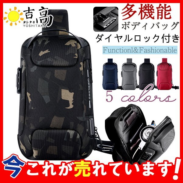 ショルダーバッグ ボディバッグ メンズ 大容量 斜めがけ ダイヤルロック付き セキュリティ USB充電ポート付き 肩掛け 多機能 防水 旅行 おしゃれ