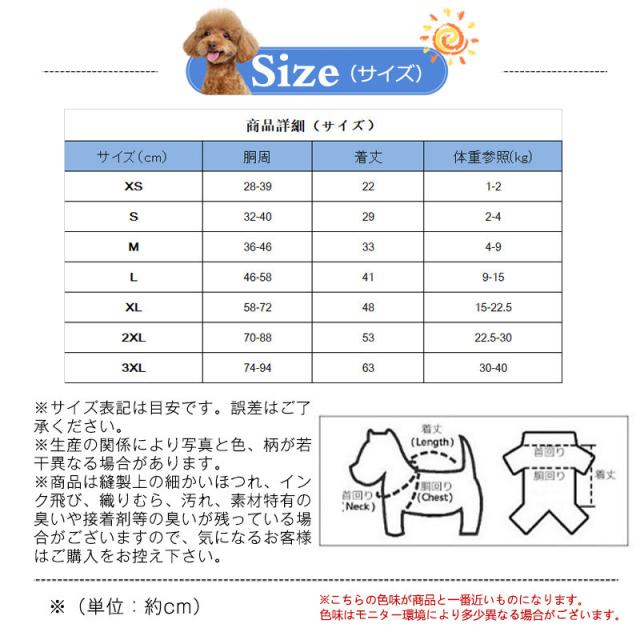 商品詳細カラー:/A01/A02/サイズ:/XS/S/M/L/XL/2XL/3XL/■商品説明秋でも春でも快適に過ごせます、アウトドア、お散歩、お出かけなどに大活躍!愛犬と楽しい時を過ごして下さいね。お友達や親族にワンちゃんを飼っている方へのプレゼントとしてもとっても喜ばれます。■素材:ポリエステル、その他【ご注意】●サイズ表記は目安です。誤差はご了承ください。●生産の関係により写真と色、柄が若干異なる場合があります。■キーワードドッグウエア 犬服 ペット服 洋服 ペットウエア 犬 愛犬 ペット ペット用品 犬服 かわいい 春服 春 夏服 夏 シーズー パグ ヨーキー マルチーズ チワワ トイプードル ポメラニアン 柴犬 室内犬用 春 夏 小型犬 中型犬 大型犬用 犬服 安い シンプル