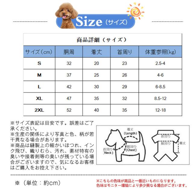 商品詳細カラー:/グリーン/ブルー/グレー/サイズ:/S/M/L/XL/2XL/■商品説明秋でも春でも快適に過ごせます、アウトドア、お散歩、お出かけなどに大活躍!愛犬と楽しい時を過ごして下さいね。お友達や親族にワンちゃんを飼っている方へのプレゼントとしてもとっても喜ばれます。■素材:ポリエステル、その他【ご注意】●サイズ表記は目安です。誤差はご了承ください。●生産の関係により写真と色、柄が若干異なる場合があります。■キーワードドッグウエア 犬服 ペット服 洋服 ペットウエア 犬 愛犬 ペット ペット用品 犬服 かわいい 春服 春 夏服 夏 シーズー パグ ヨーキー マルチーズ チワワ トイプードル ポメラニアン 柴犬 室内犬用 春 夏 小型犬 中型犬 大型犬用 犬服 安い シンプル
