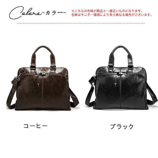 商品詳細:カラー:/コーヒー/ブラックサイズ:/フリーサイズ-------------【商品説明】『大人カジュアルは上品に仕上げる。』メンズに大人気のオシャレデザインがポイント!高級感もありビジネスシーンでも使用可能となっております。おしゃれで収納力抜群!通勤・出張に最適!シンプルなデザインだから、どんなスタイルにもマッチ。-------------【サイズ】約W39×H30×D8cm【適用サイズ】13インチPC対応-------------【素材】高級PUレザー、その他-------------【キーワード】パソコンバッグ ビジネスカバン レディース メンズ ビジネス 出張 営業 ノートパソコン 多機能 耐水 カバン 値下げ セール 安い 大きいかばん 激安 爆売中 手提げ 肩掛け 就職活動 就活 大容量 耐衝撃 自転車 2泊3日 一泊二日 シンプル 薄型 ビジネスマン 弁当 オシャレ お洒落 新人 人気 贈り物 面接 リクルート フレッシュマン