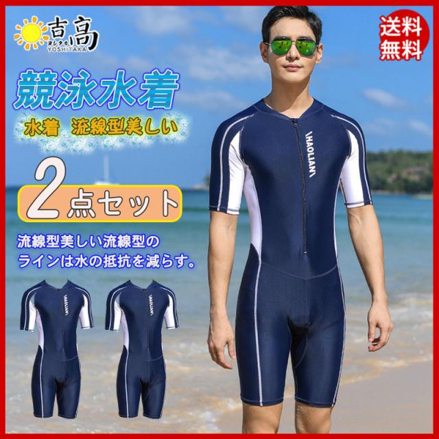 水着 メンズ 上下セット サーフウェア 水泳 競泳 ウェットスーツ フィットネス ジップアップ 快適 日焼け止め 速乾 体型カバー 海 プール 父の日