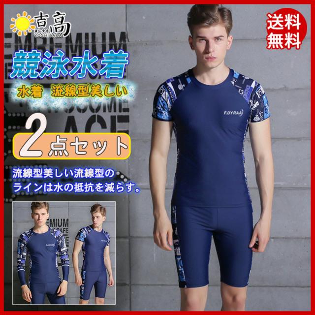 水着 メンズ 上下セット ウェットスーツ スイム サーフウェア 水泳 競泳 フィットネス 絵文字 半袖 長袖 短パン 快適 日焼け止め 体型カバー 海